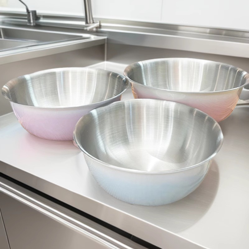 輸出越境新グラデーションカラーステンレス鋼サラダボウルサラダボウル家庭用野菜ボウル 3 点セットラウンドボウル