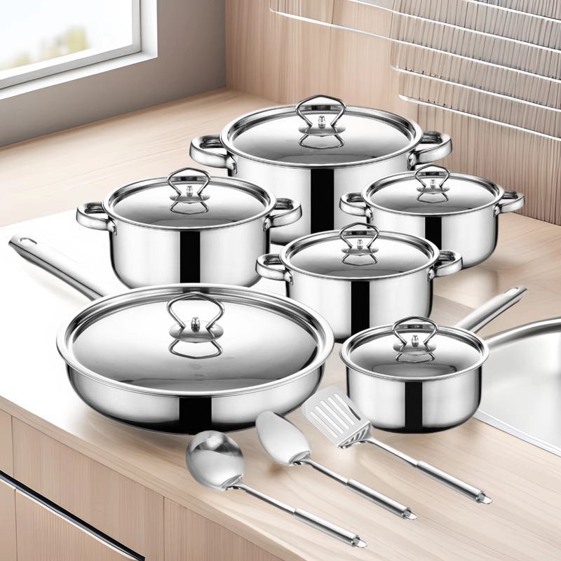 南アフリカへの国境を越えた輸出ステンレス鋼鍋セット調理器具セットキッチン調理器具スチールカバーセット鍋15ピース鍋セット