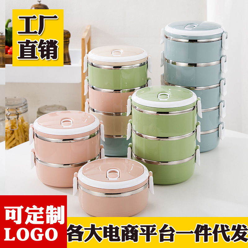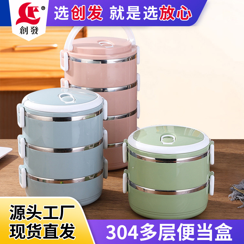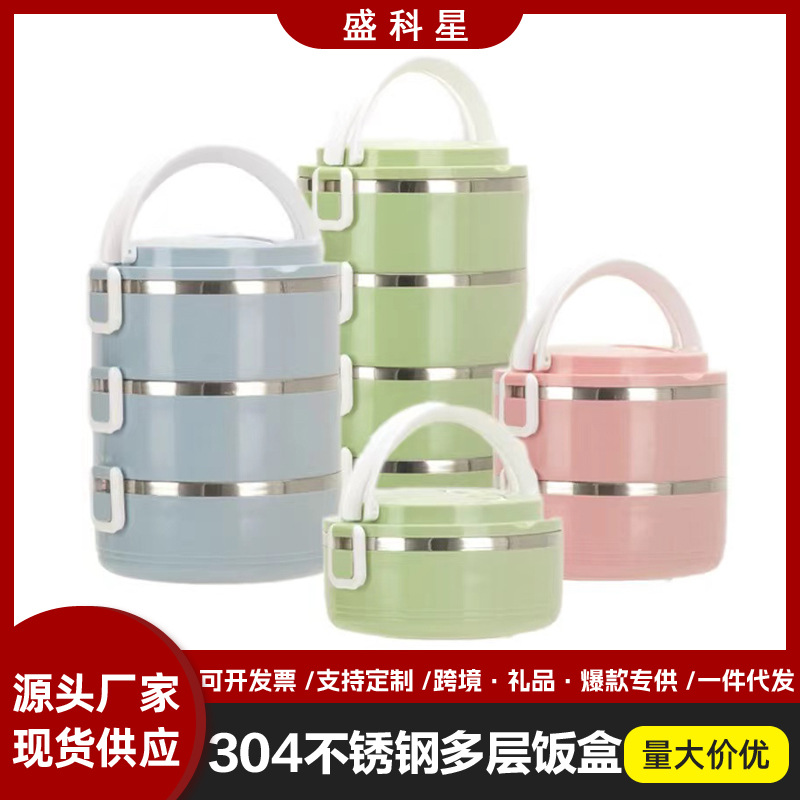 ギフト弁当箱円形北欧風学校会社弁当箱携帯多層304ステンレス弁当箱卸売り