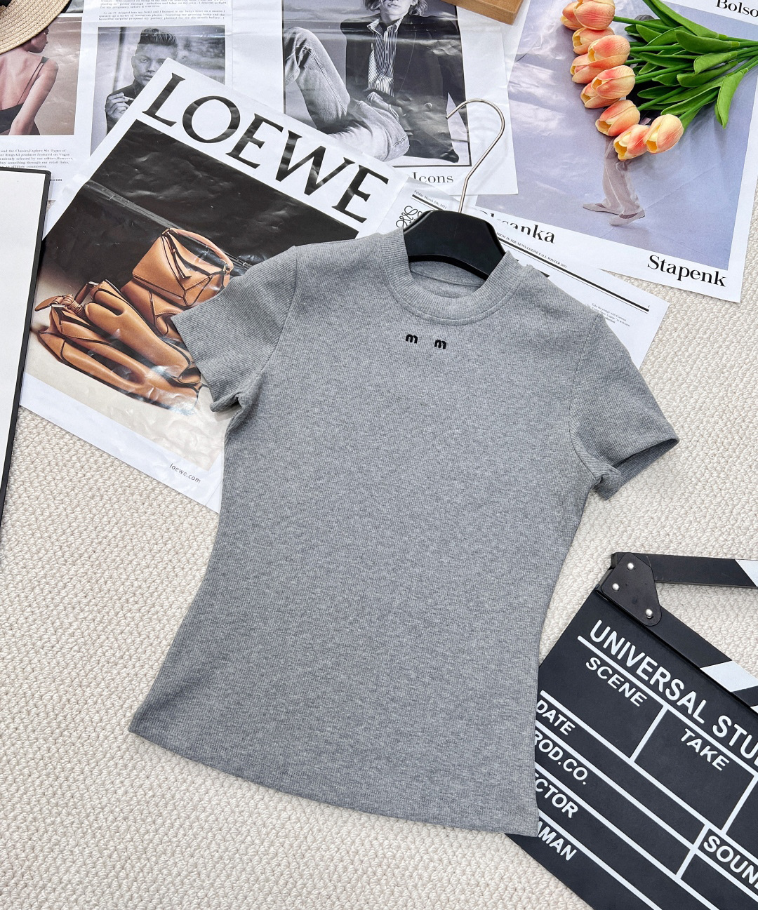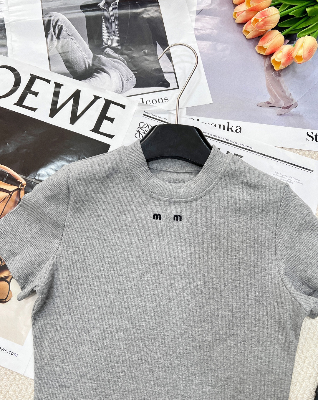 MMグレーのピットのシンプルな丸首tシャツの女性刺繍のアルファベット2025夏のゆったりとしたスリムフィットのファッションブランドの半袖