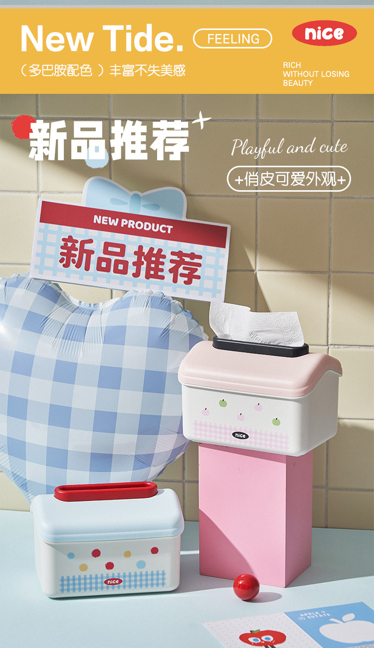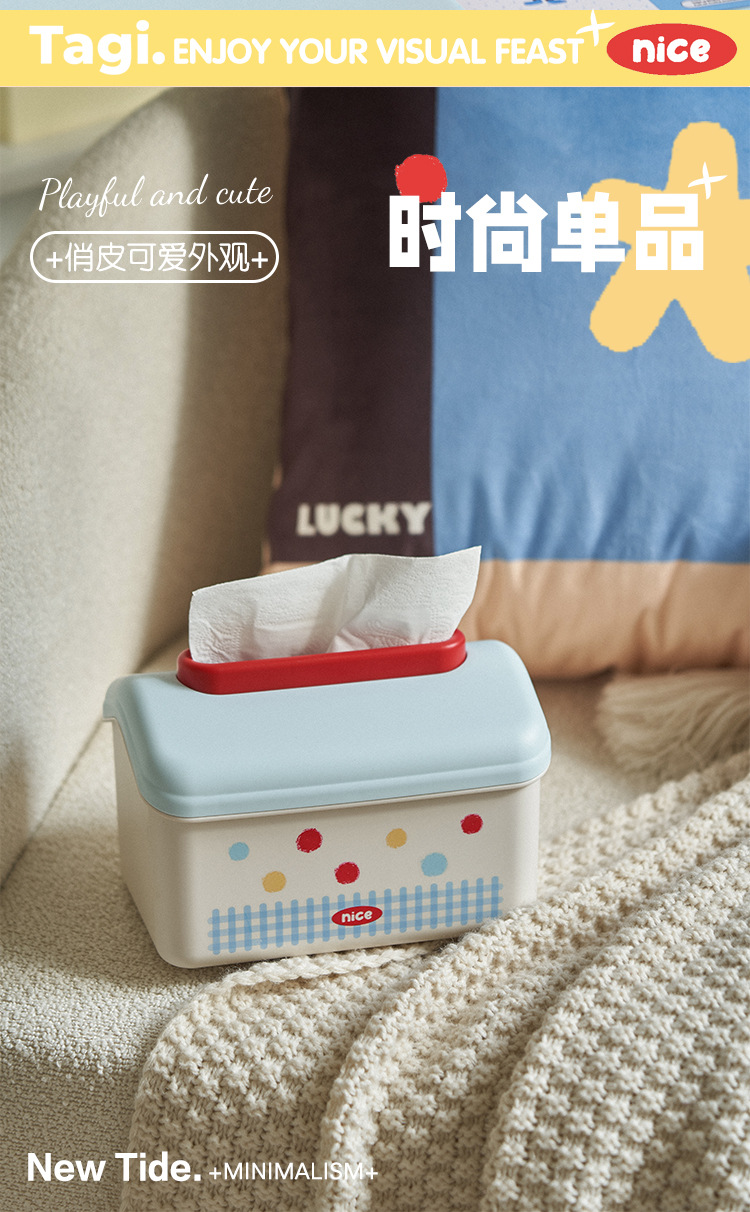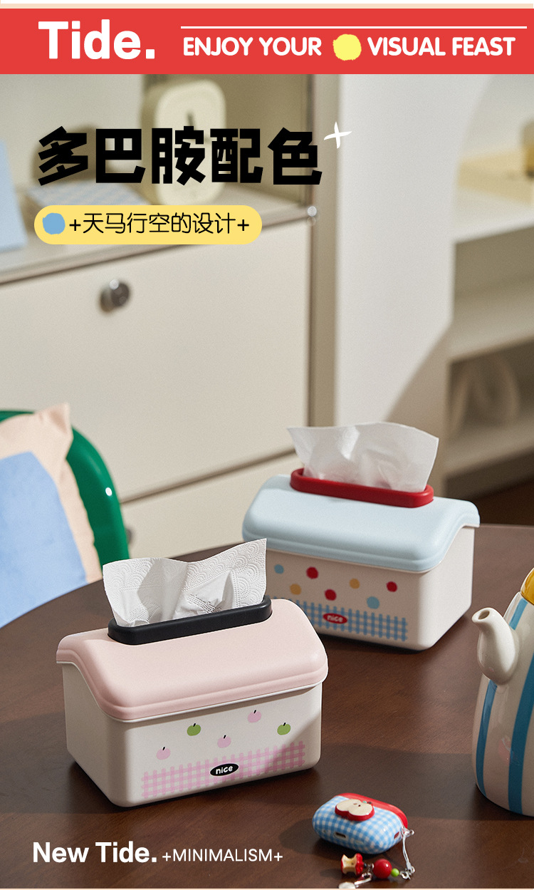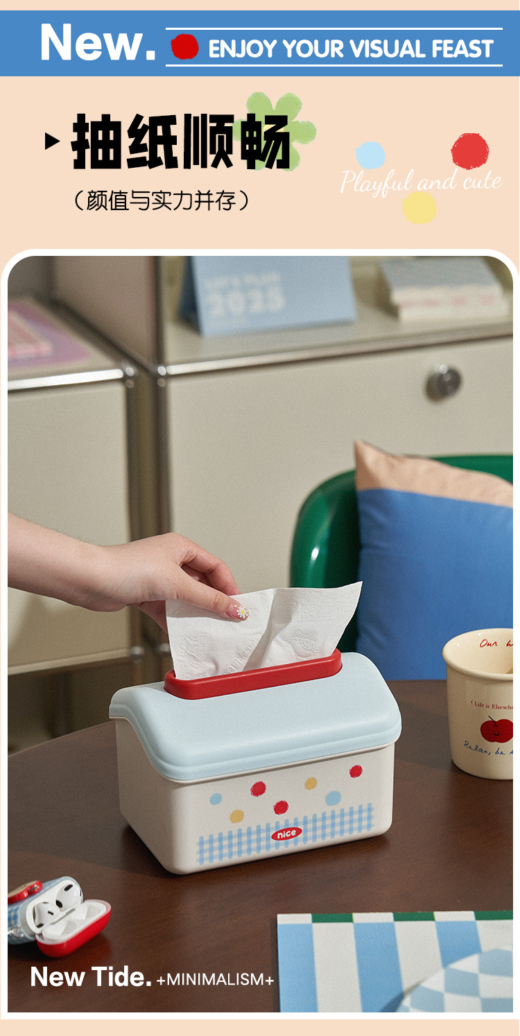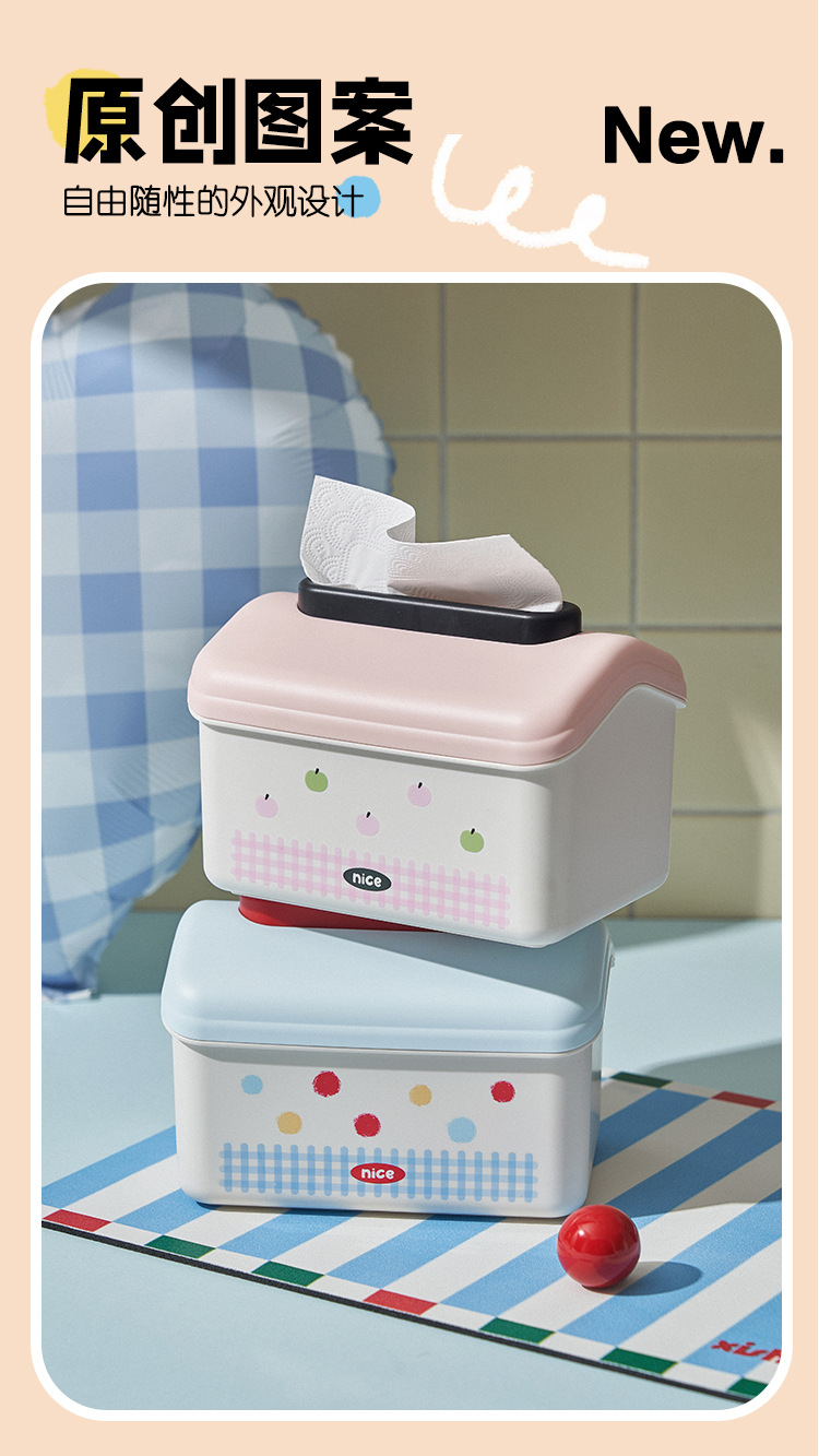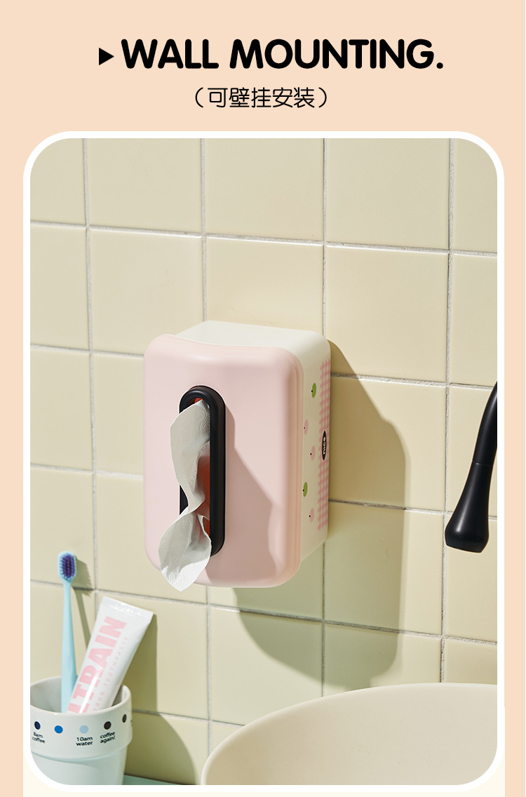 家庭用デスクトップティッシュボックス漫画リビングルームトイレ壁挂け収纳ボックスクリエイティブポイントかわいいスプリング引き出しボックス