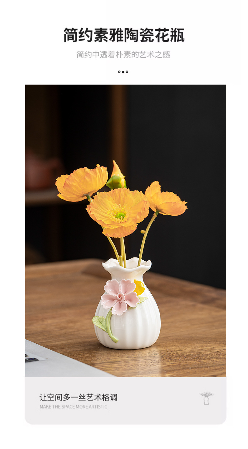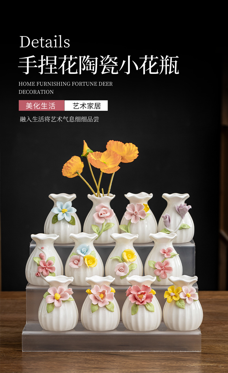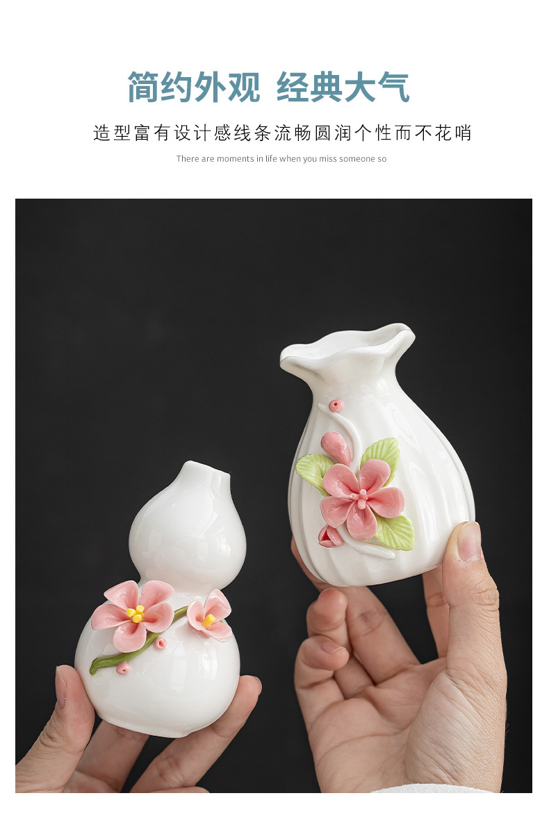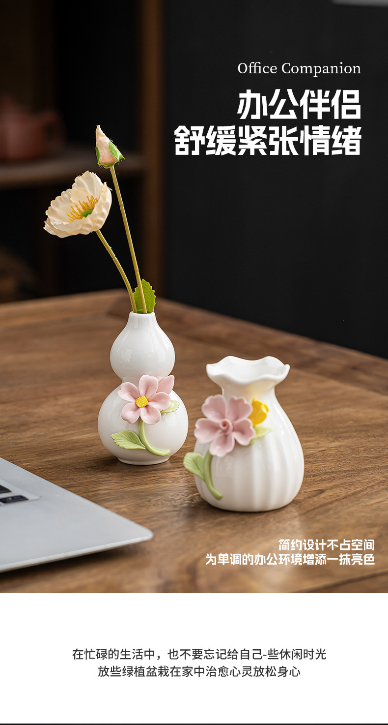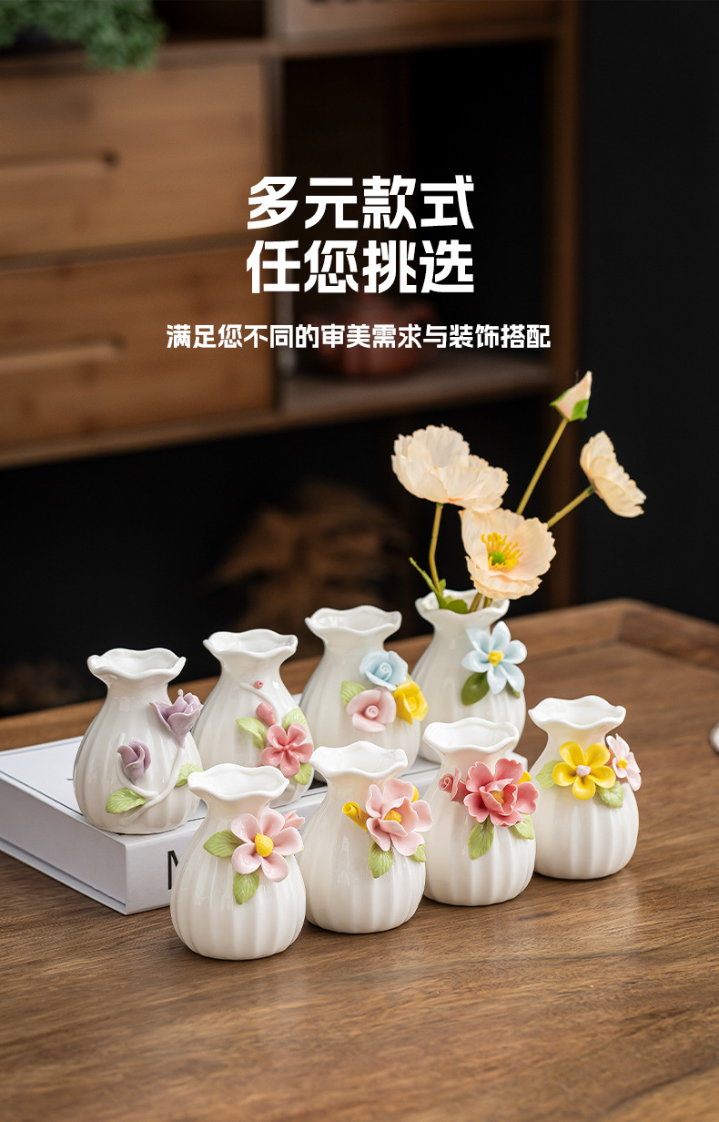 手捏牡丹花陶瓷花瓶水培小花器白色迷你清新花插摆件桌面工艺饰品