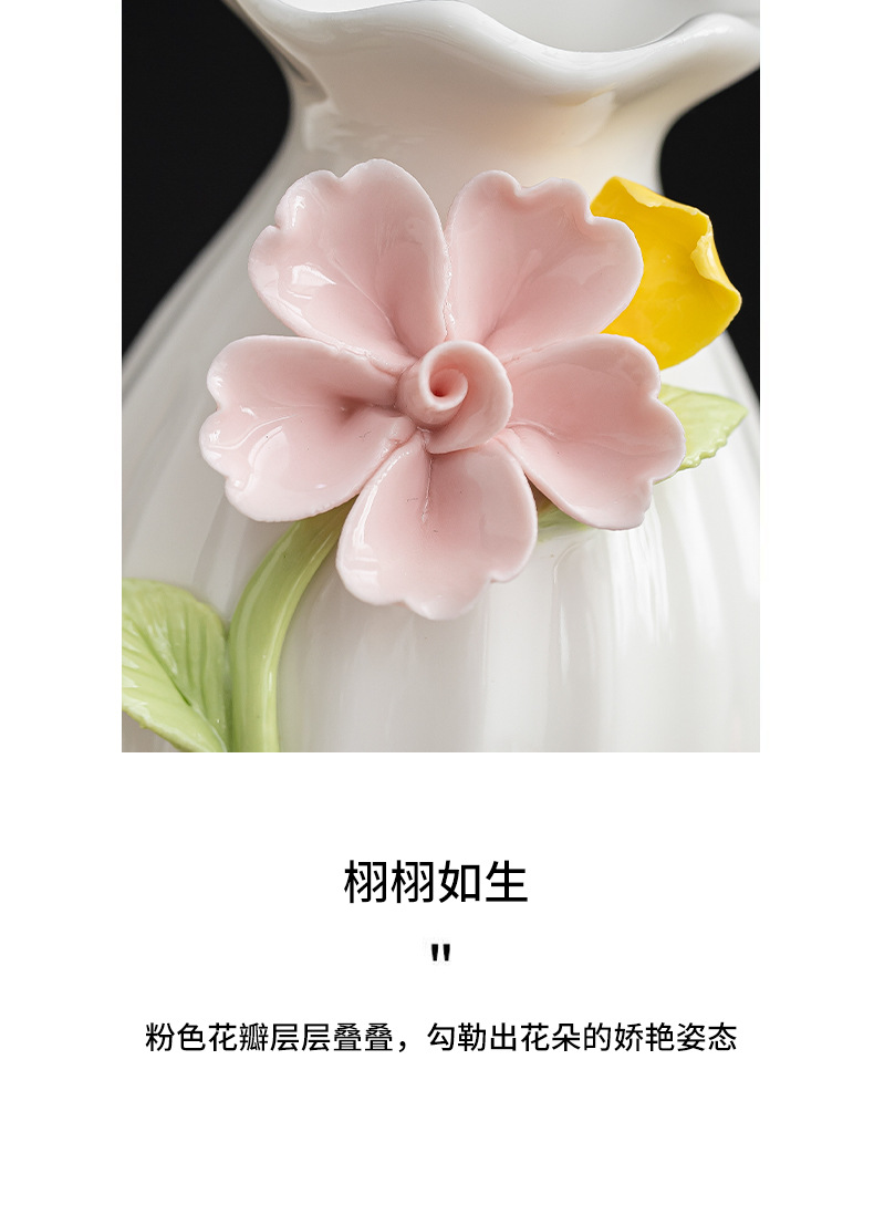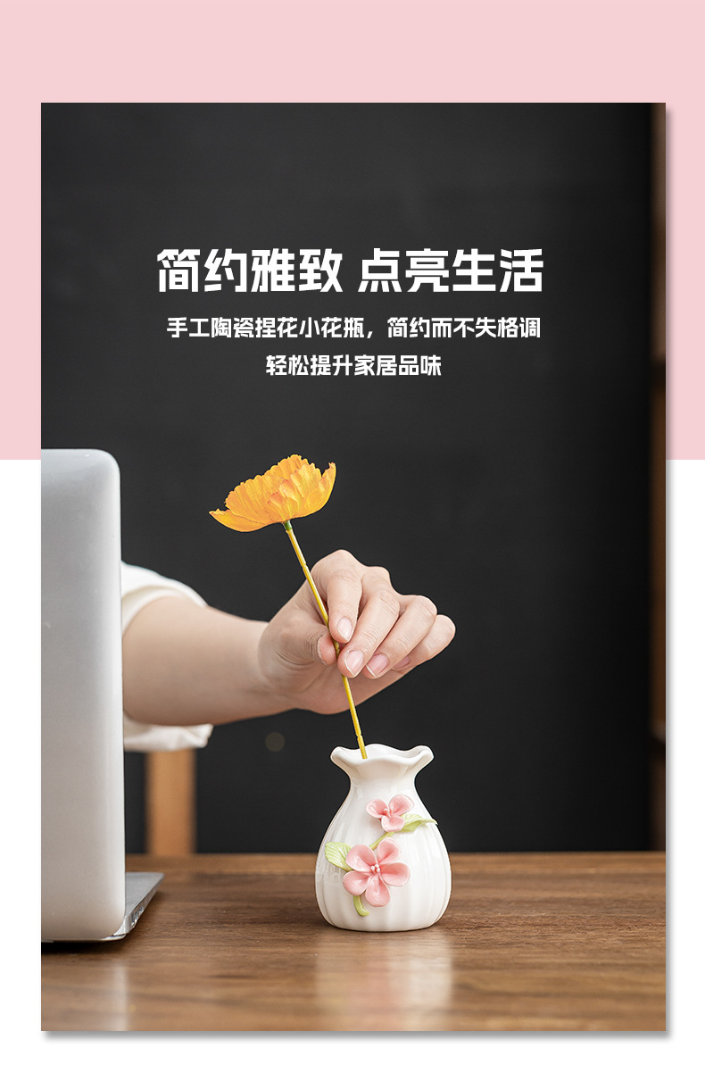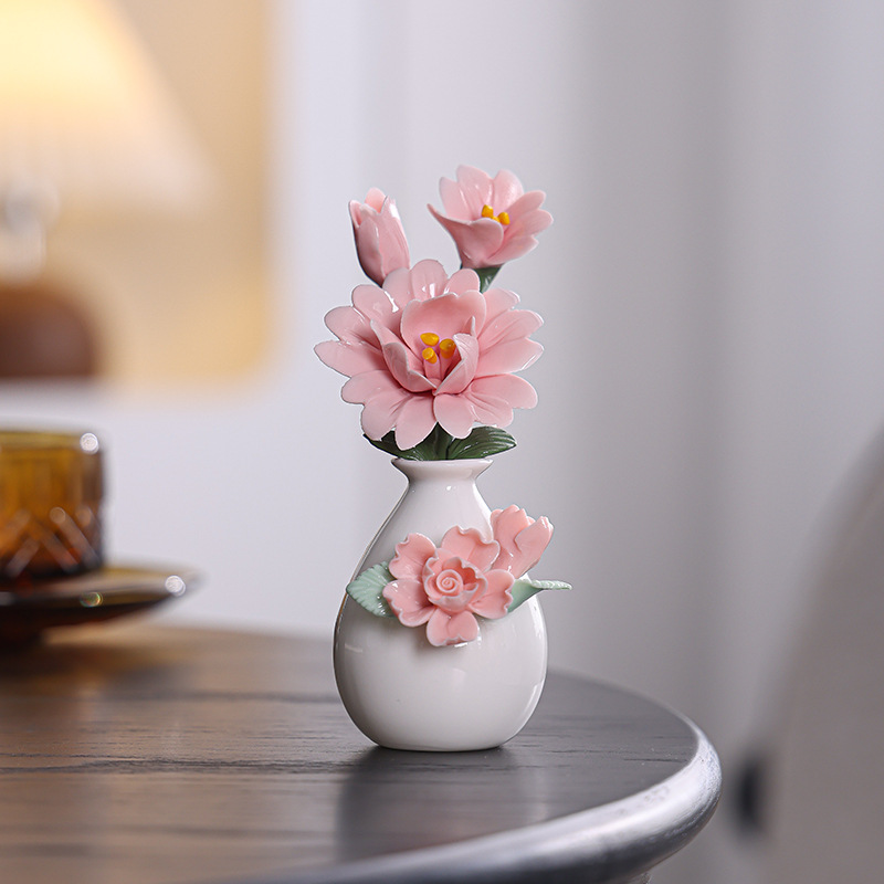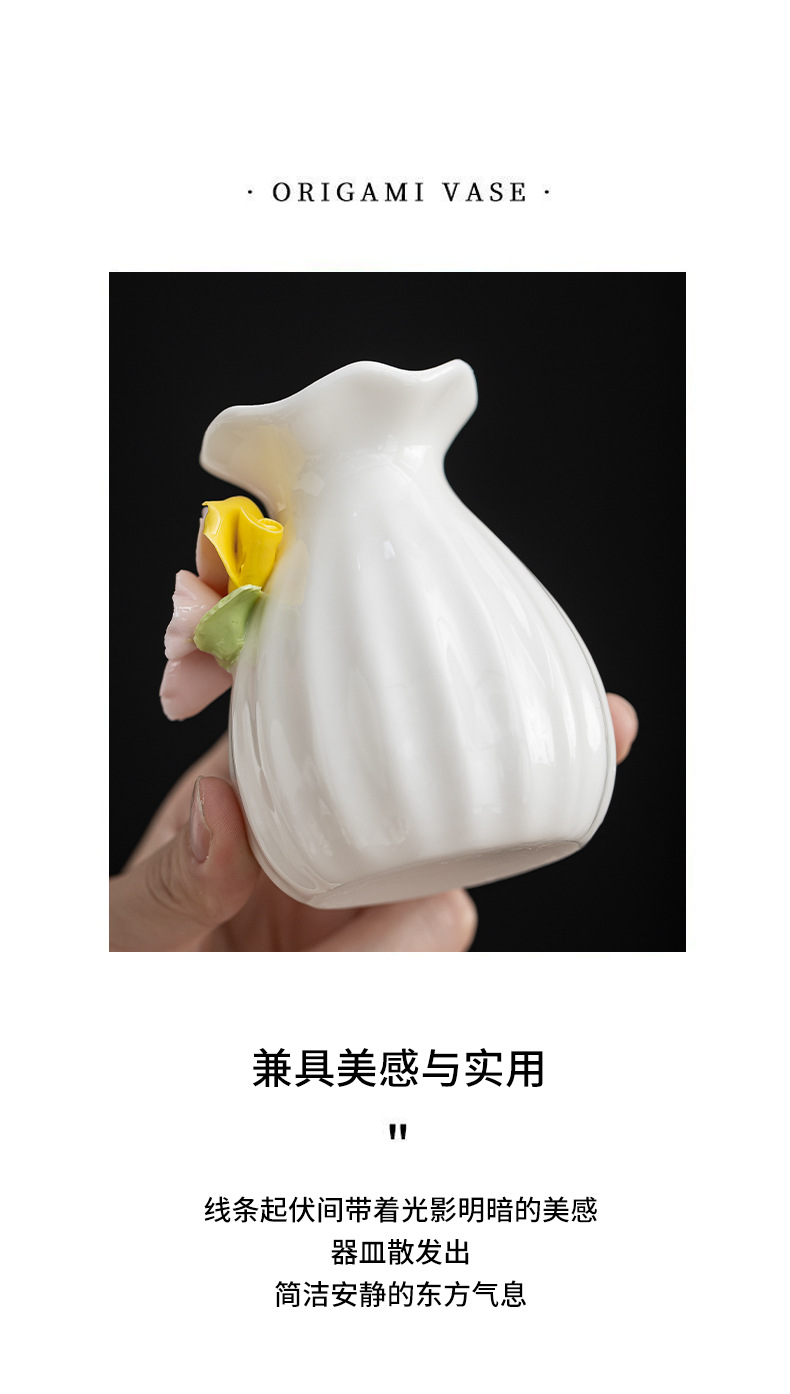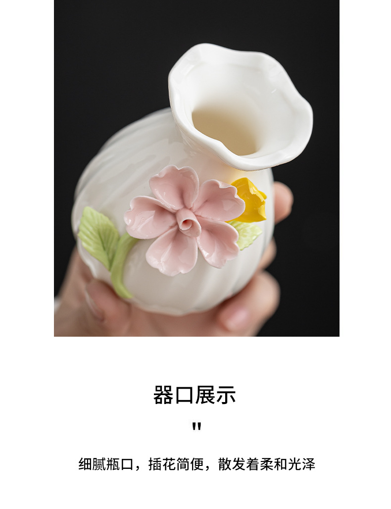 手捏牡丹花陶瓷花瓶水培小花器白色迷你清新花插摆件桌面工艺饰品