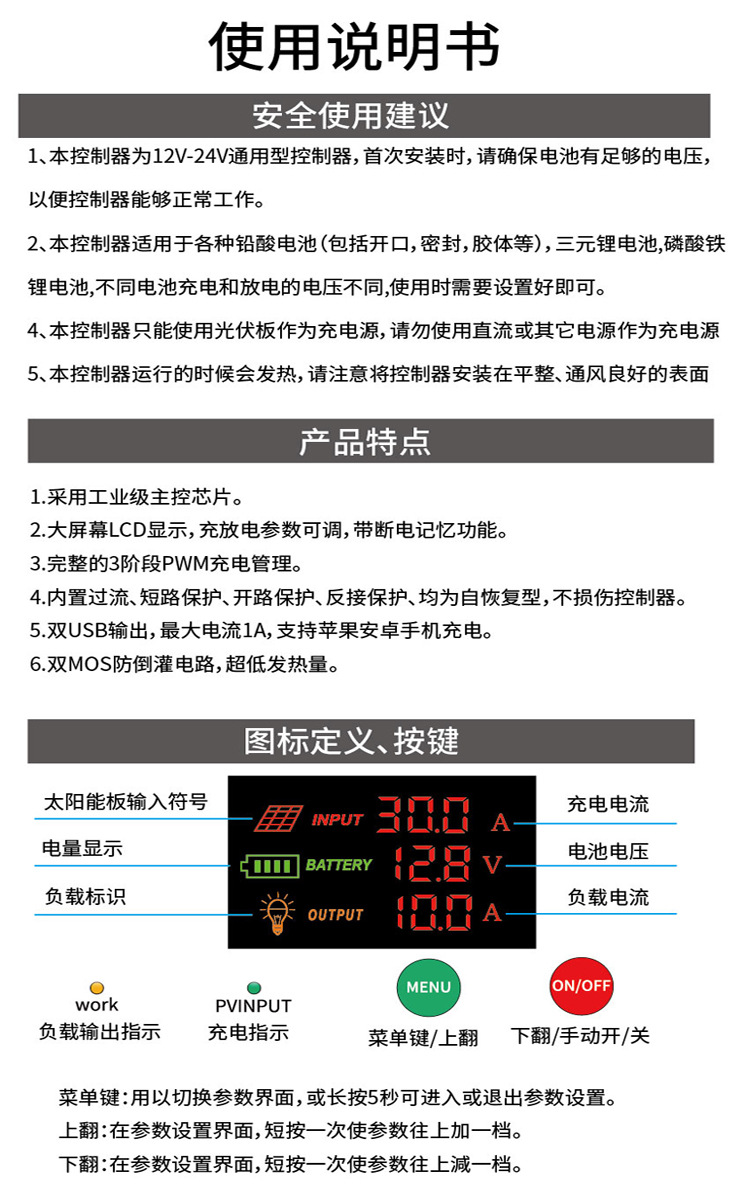 太陽光発電充電器 LED 無料設定 PWM 太陽光発電ソーラー充電制御ソーラーコントローラー 12V24V