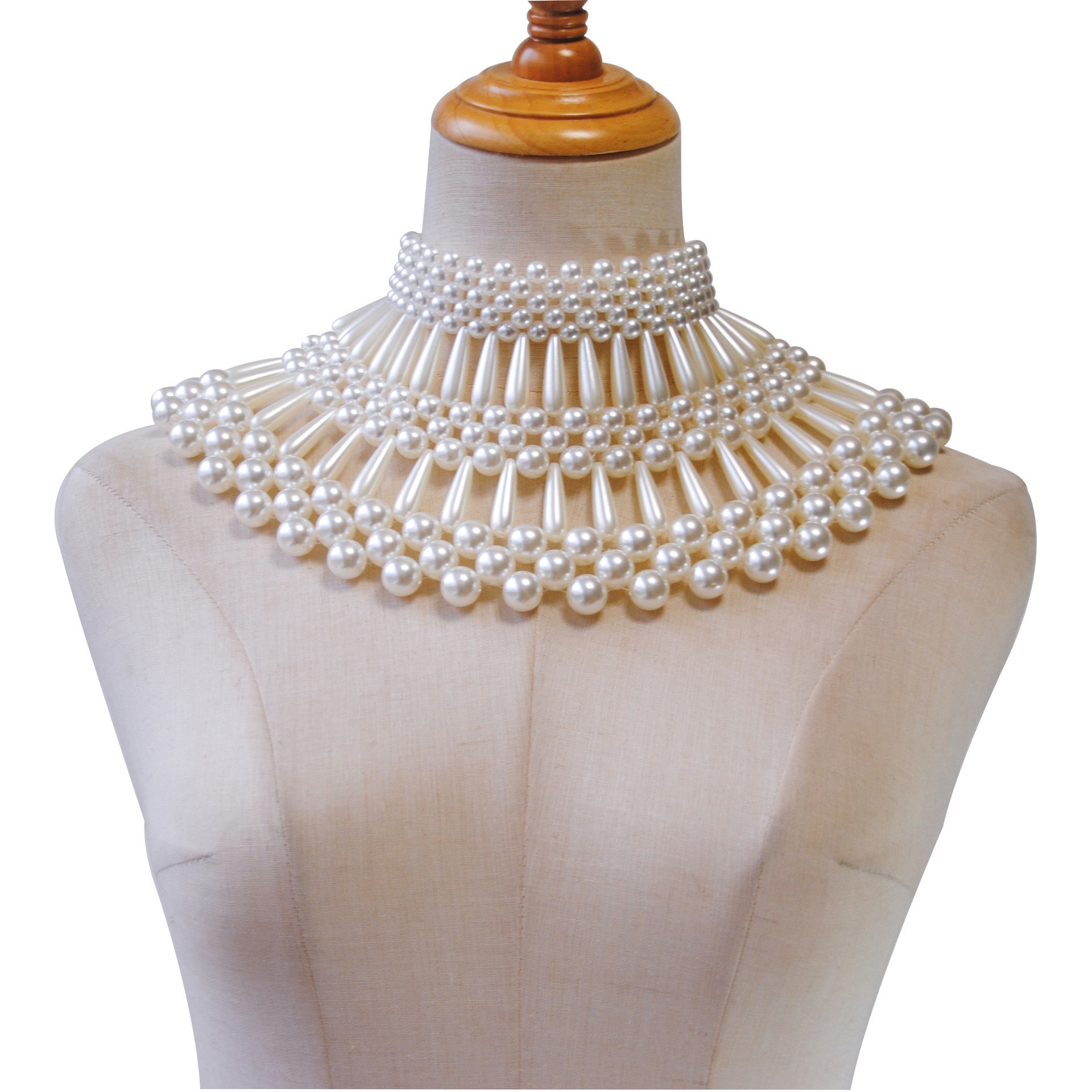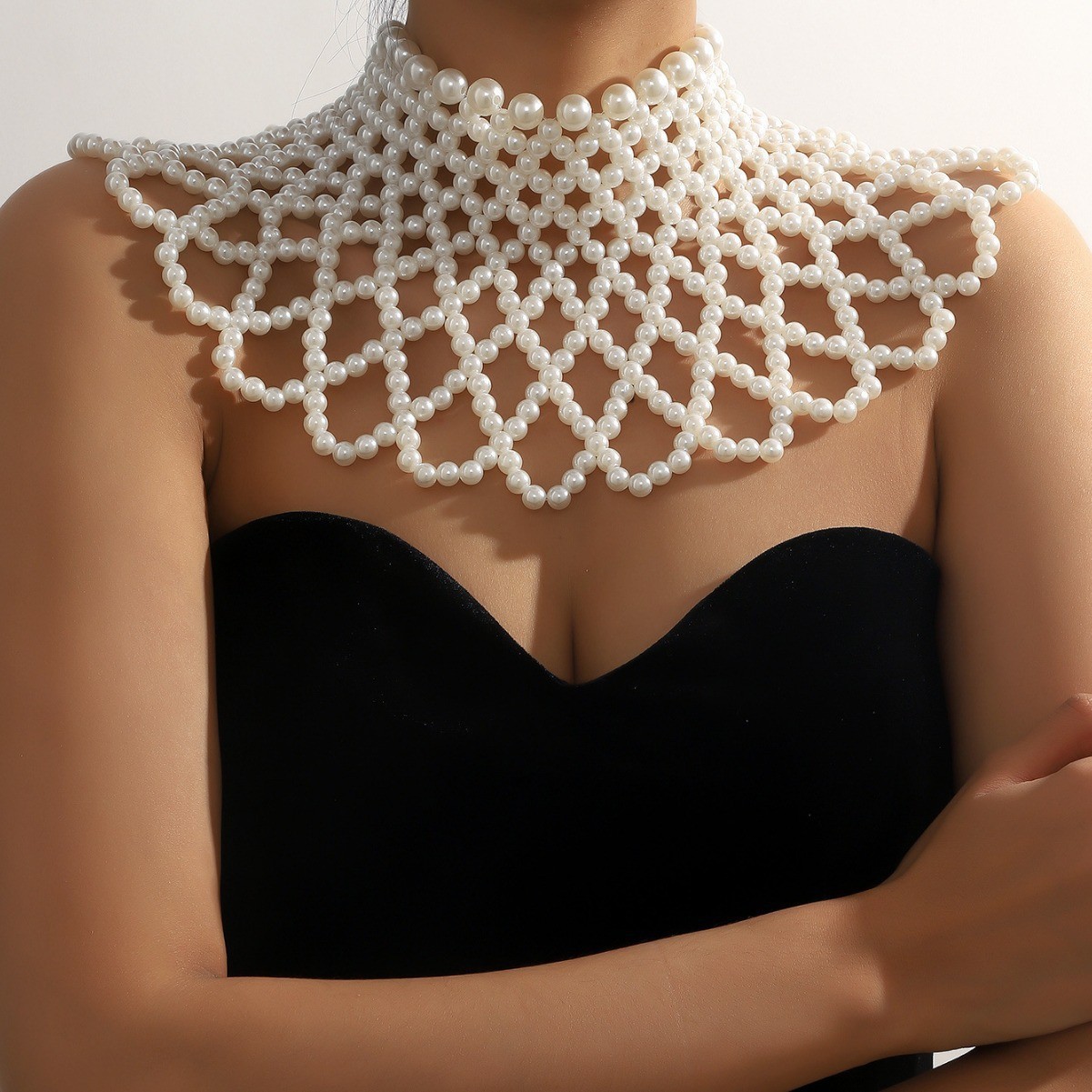 新しいヨーロッパとアメリカのネックネックレス、西洋風のレトロなウェディングドレス、パールショール付きチャイナドレス、扇形の中空ネックレス