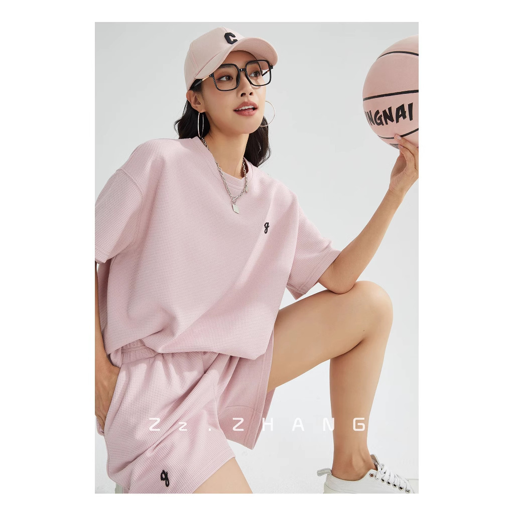 新型スポーツウェアセット女性夏2024ゆるい太ったMM韓国版半袖半ズボンカジュアルランニング服2点セット