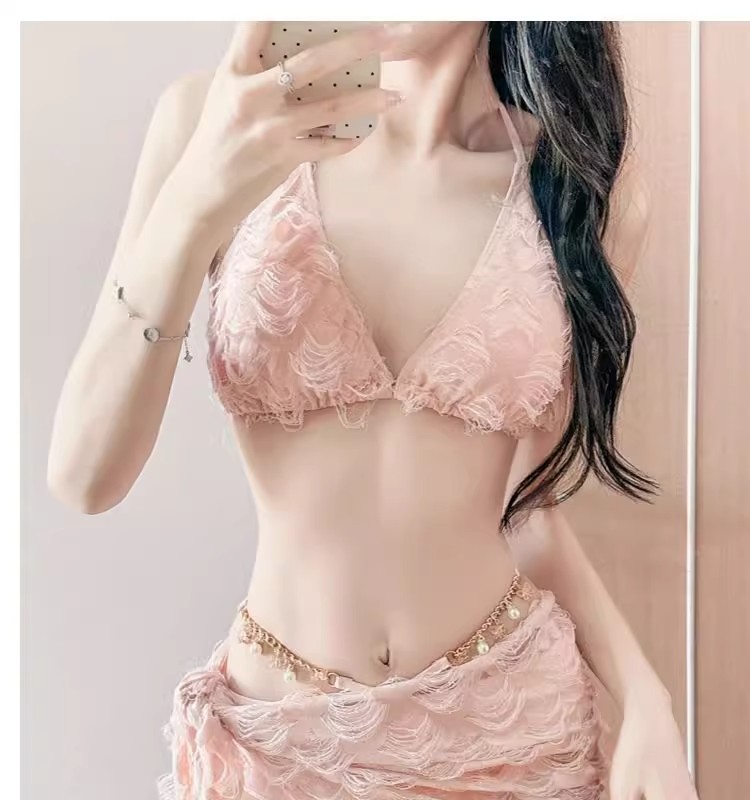 2025新型夏ピンク少女四点セットギャル水着女性分体誘拐温泉リゾートビキニ純欲