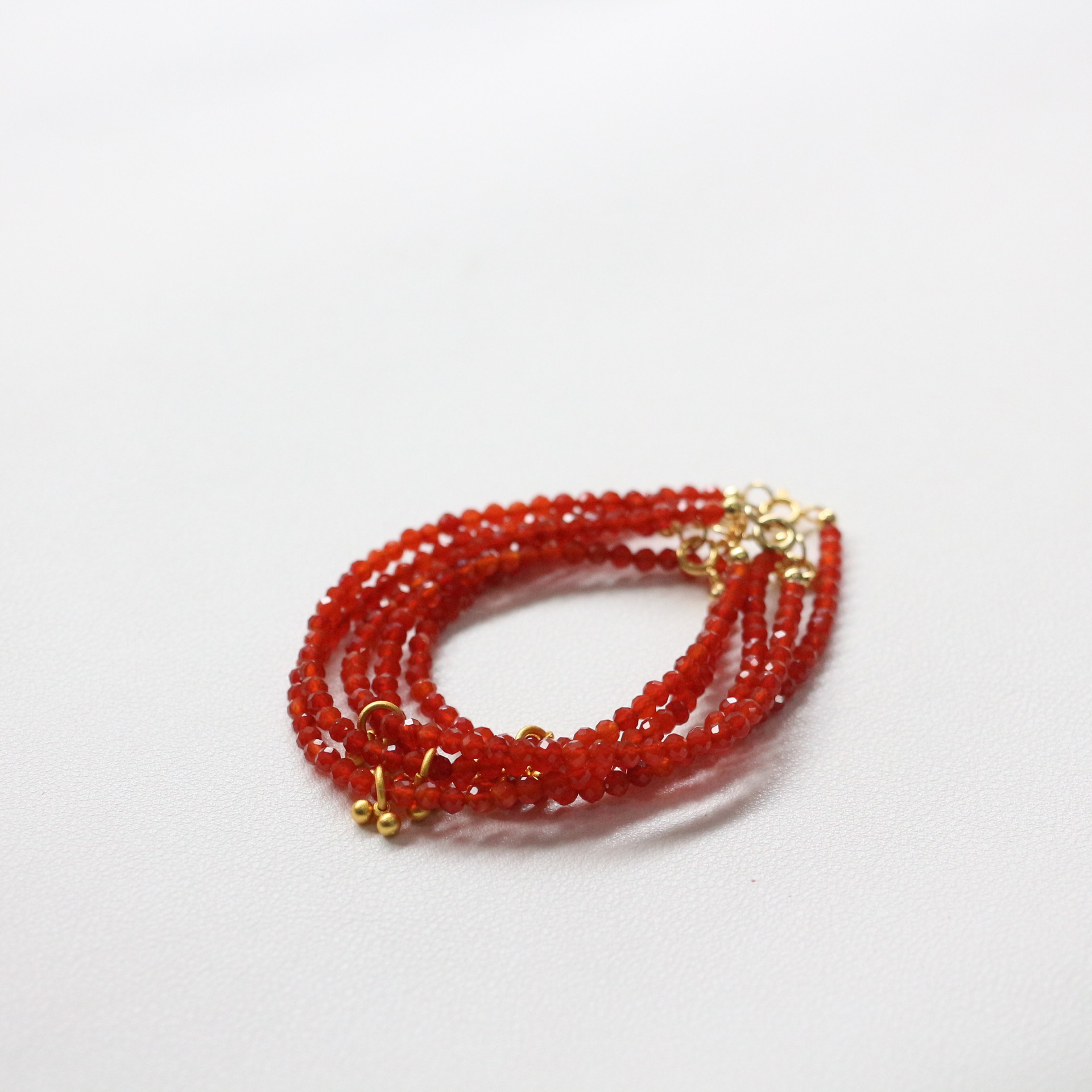 【さく葭蒼蒼】赤いゴムの花は色の海藍宝の3mmの切断面の細い金の単輪を打ってブレスレットの3回転のネックレスをつけます。