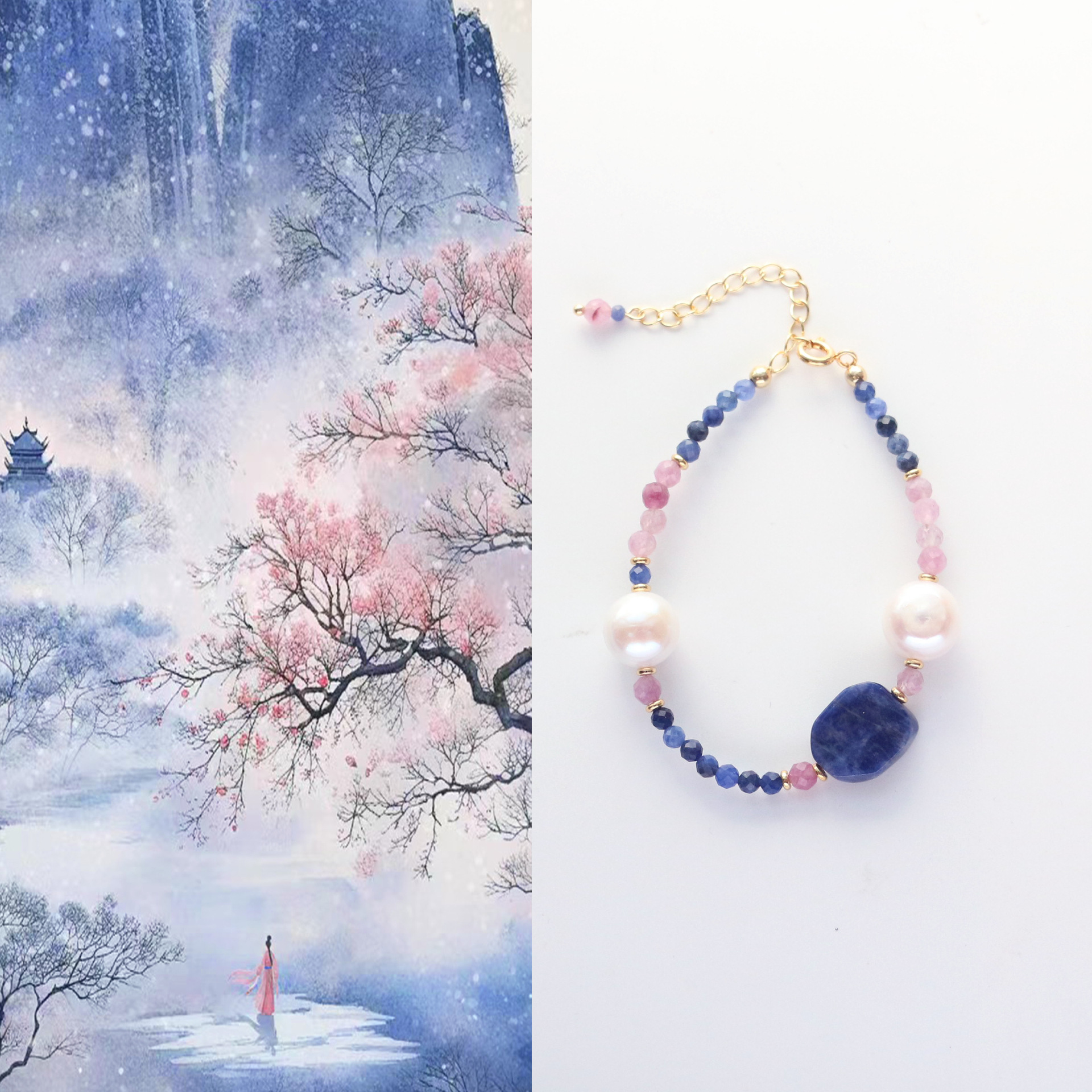 【思いの境地】天然水晶極爆海藍宝925銀ブレスレット雰囲気感深海藍ビーズブレスレット