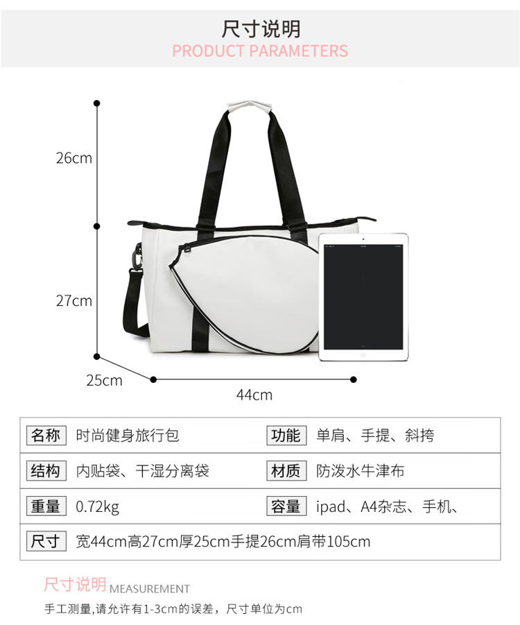 片肩大容量短距離旅行ハンドバッグ荷物収納出張搭乗バッグ乾湿分離斜めがけフィットネスバッグ