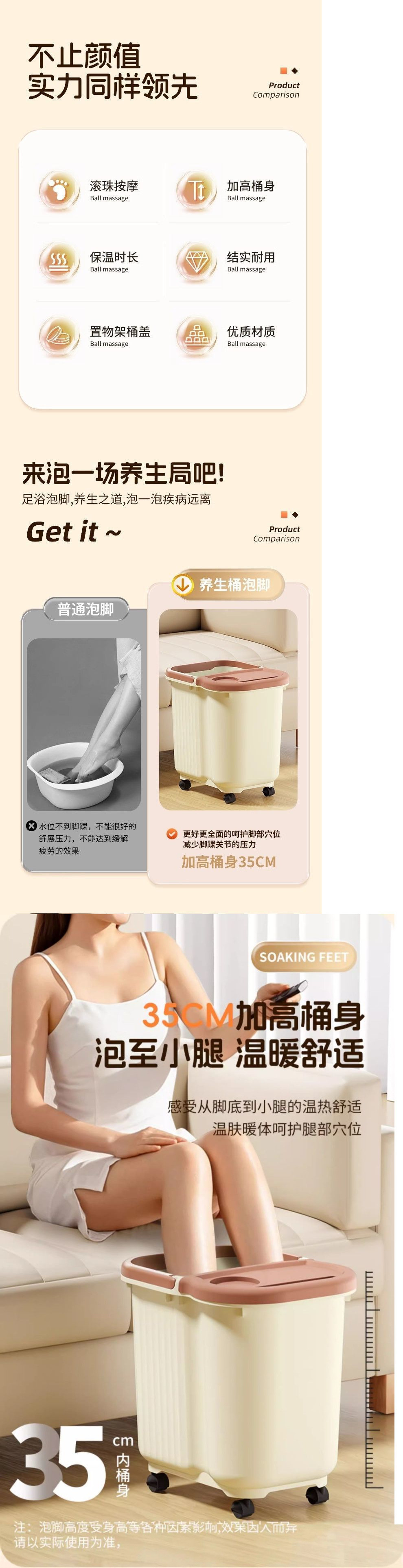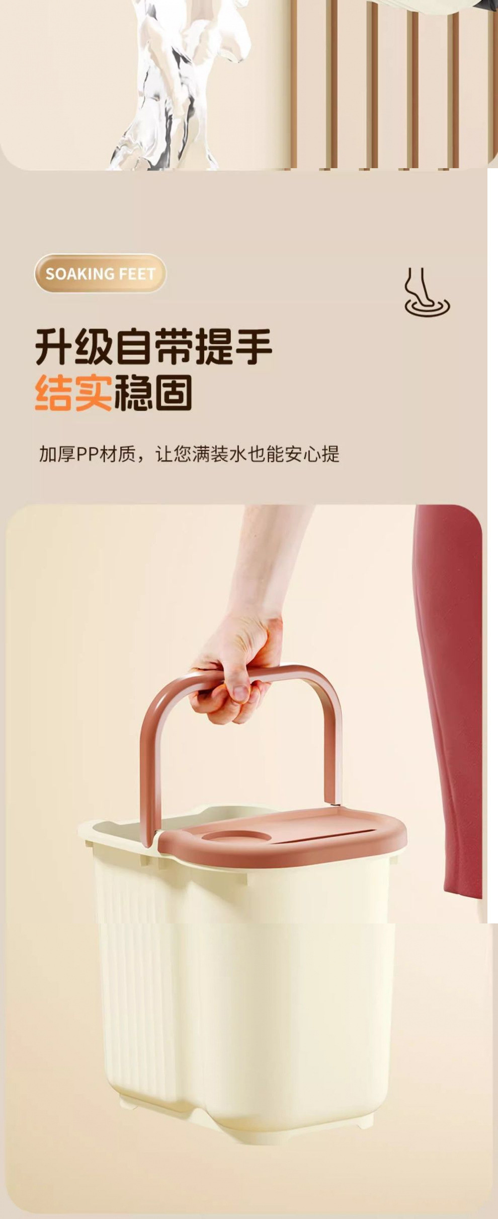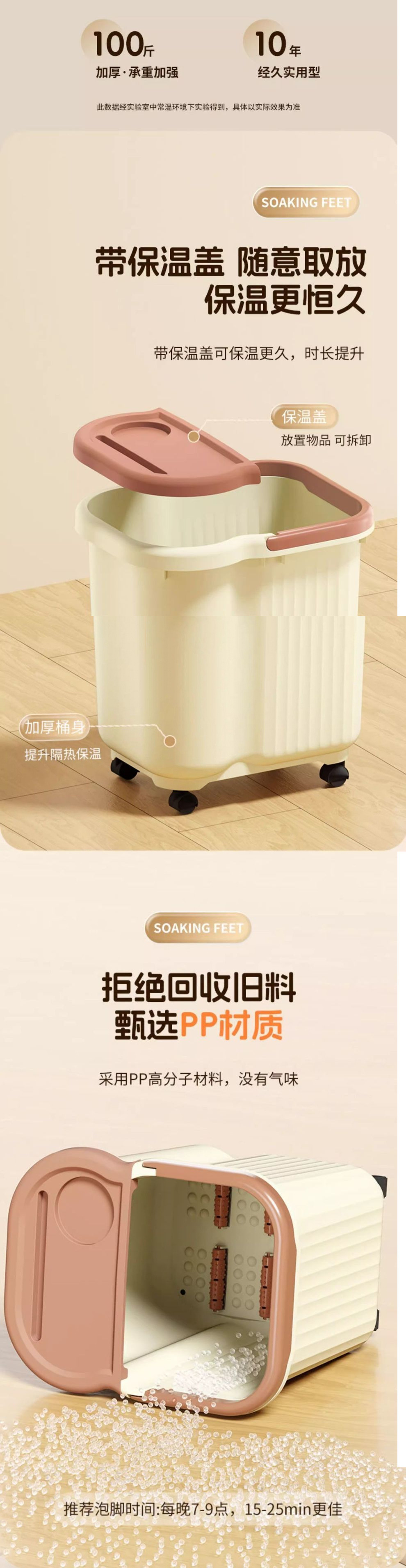持ち運びに便利な蓋付き耐衝撃性フットバスバケツ、高さと厚みのあるフットバスバケツ、フットバスバケツ、プラスチック製のフットバスバケツ、ふくらはぎフットバスバケツ