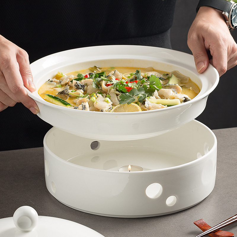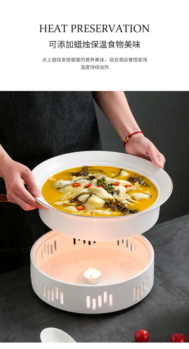 酒店餐具干锅蜡烛保温加热鱼盘圆形汤盘陶瓷热菜盘餐厅家用明炉