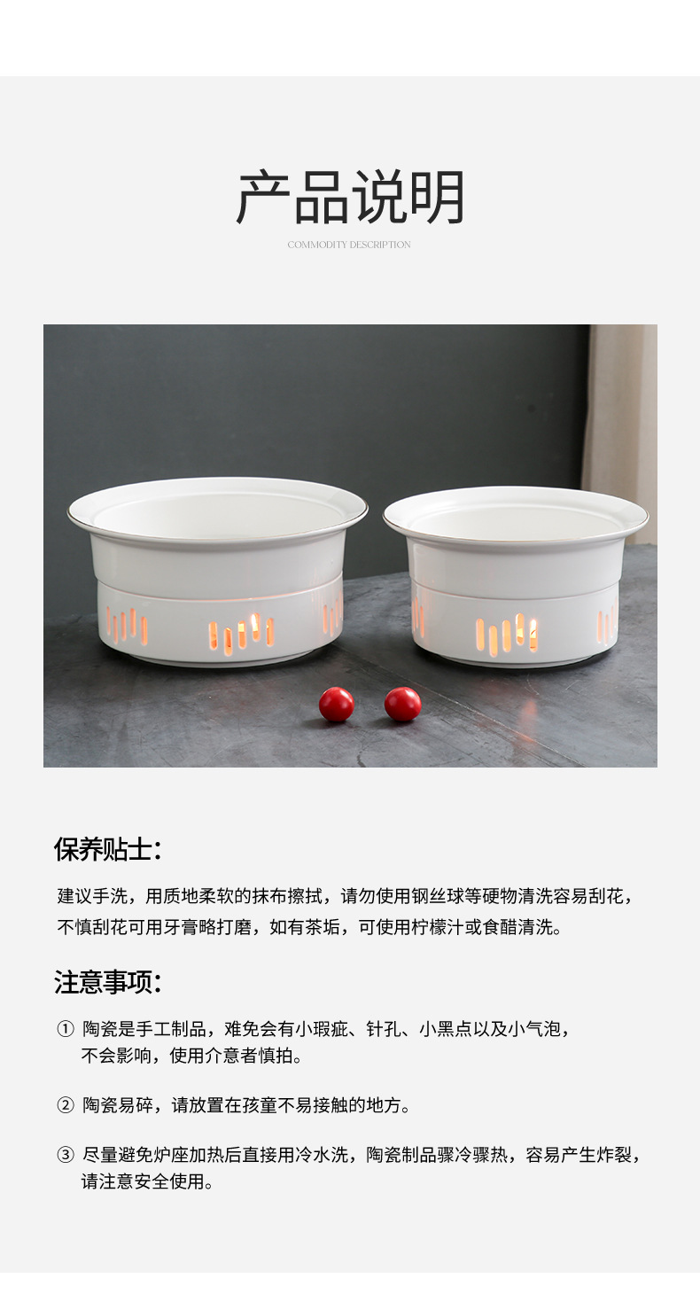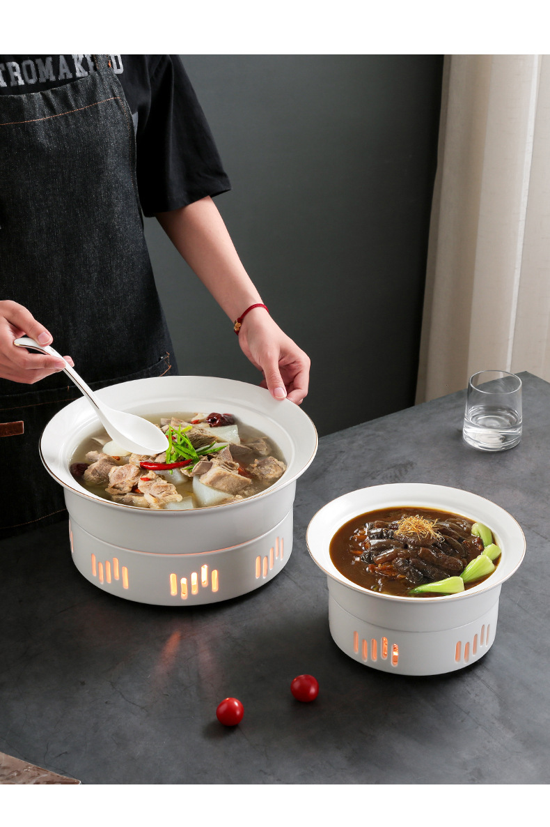 工場ホテル食器専用明炉陶磁器乾鍋皿特色ろうそく加熱保温料理皿スープ皿商用