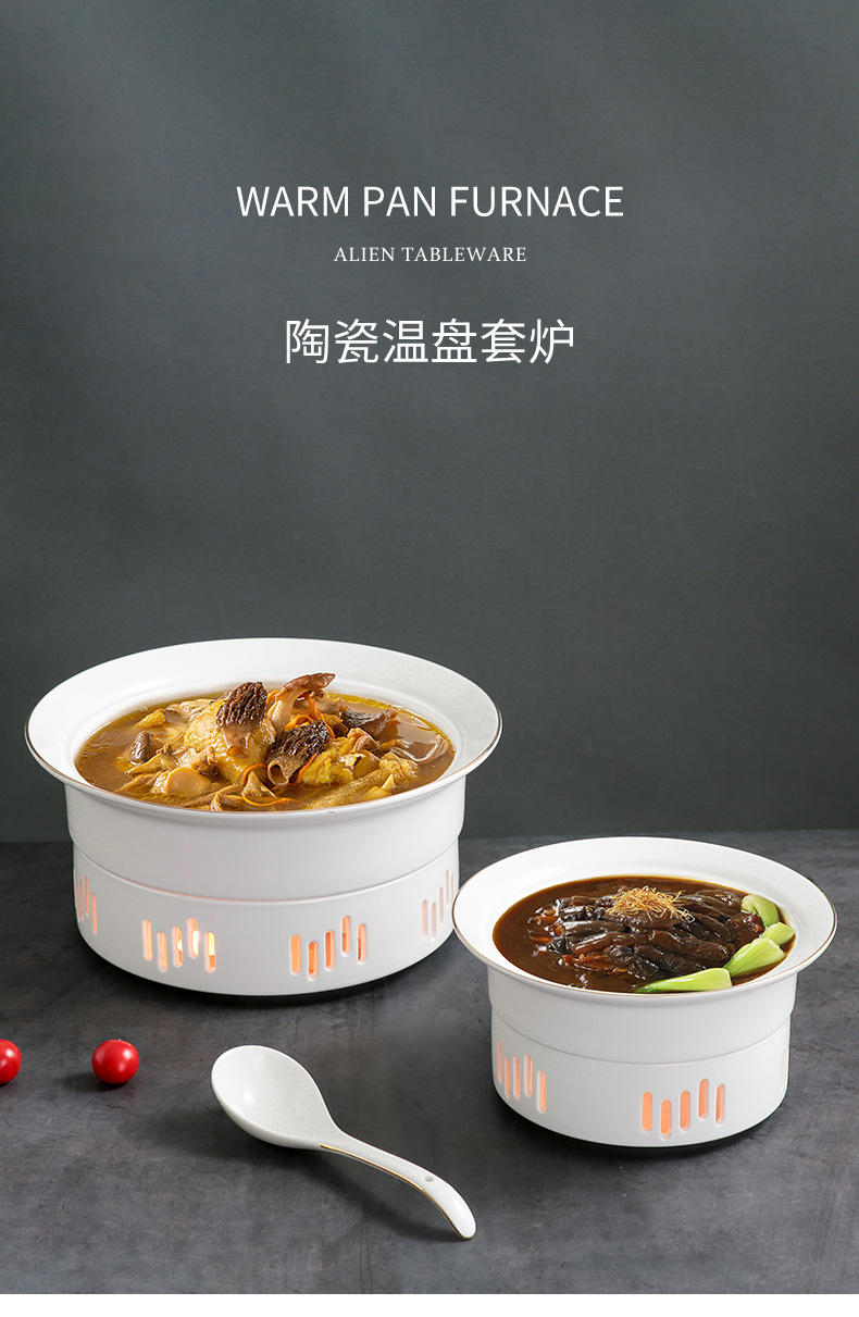 农家乐创意加热炉餐具中厨陶瓷热菜会所明炉酒店用品加热汤盘特色