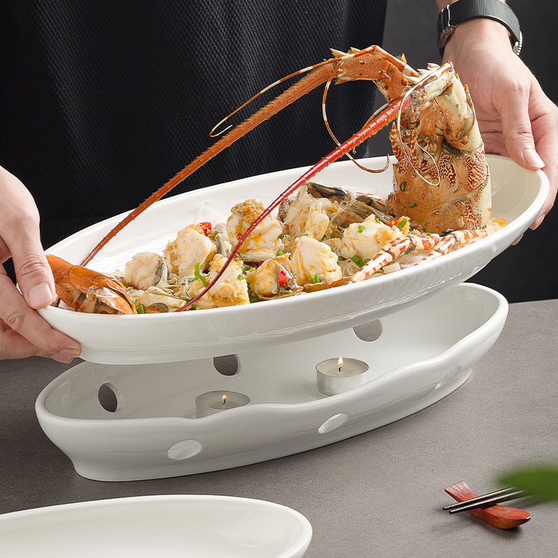 加熱魚皿超大サイズホテル明炉食器私房料理ホテル専用保温楕円皿大サイズ魚皿