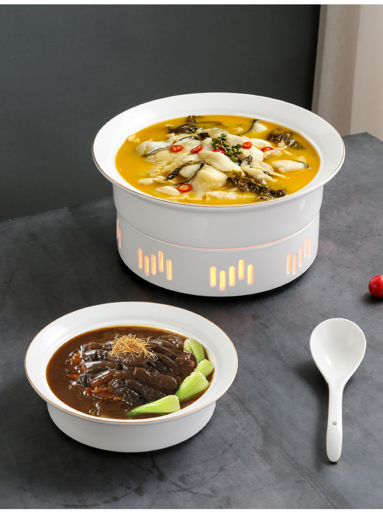 中国式酸っぱい魚加熱保温皿スープ皿ホテル食器業務用明炉陶磁器乾燥鍋皿水煮肉片皿