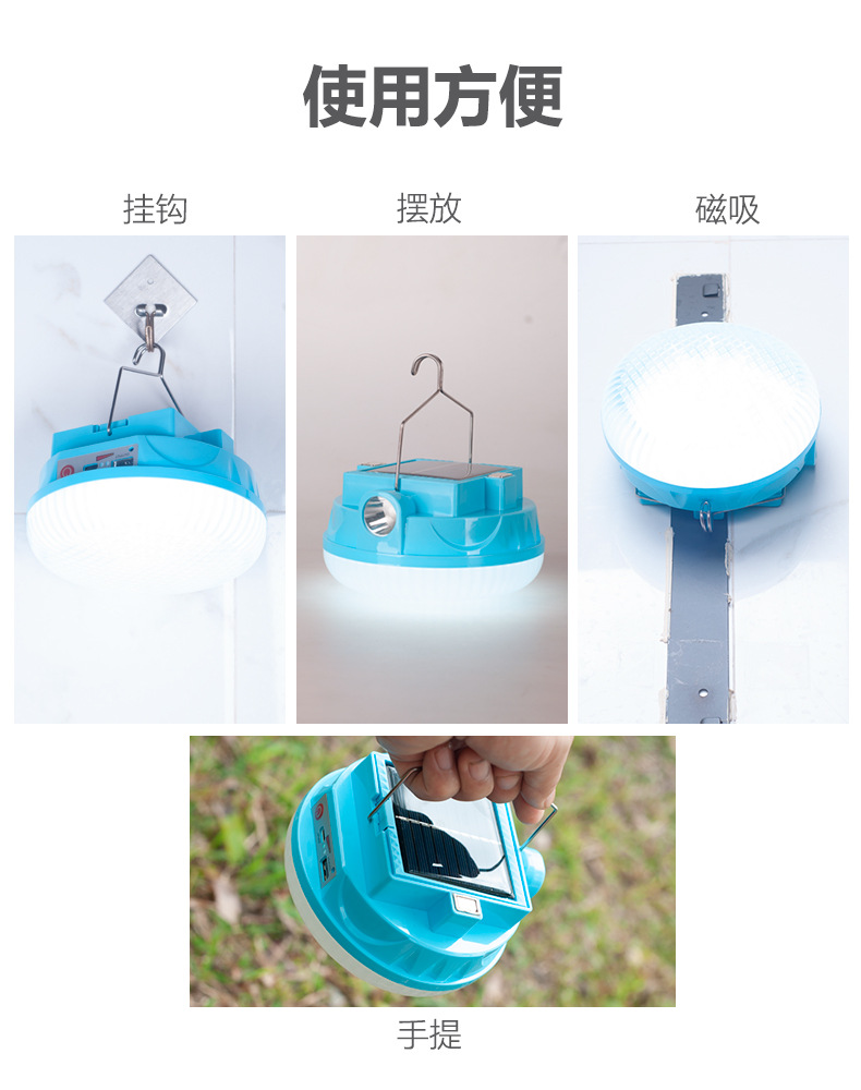 LED太阳能露营灯可磁吸悬挂应急灯电池可拆卸不插电充电照明灯泡