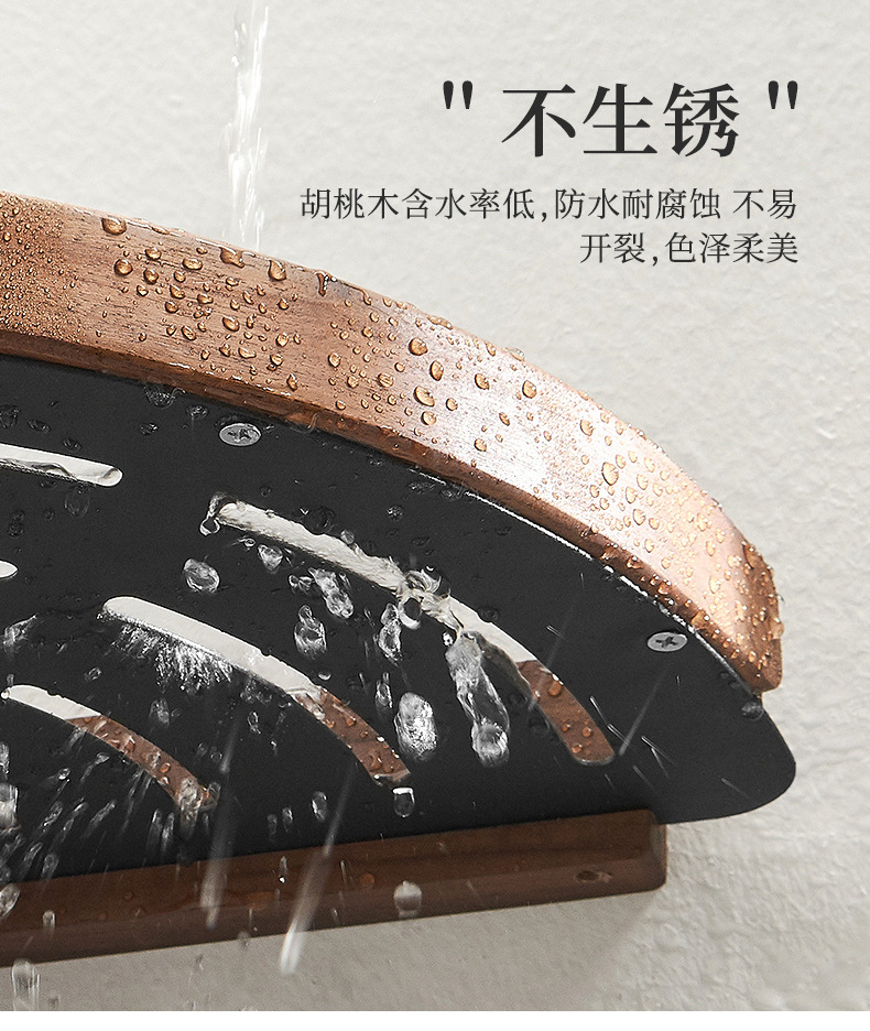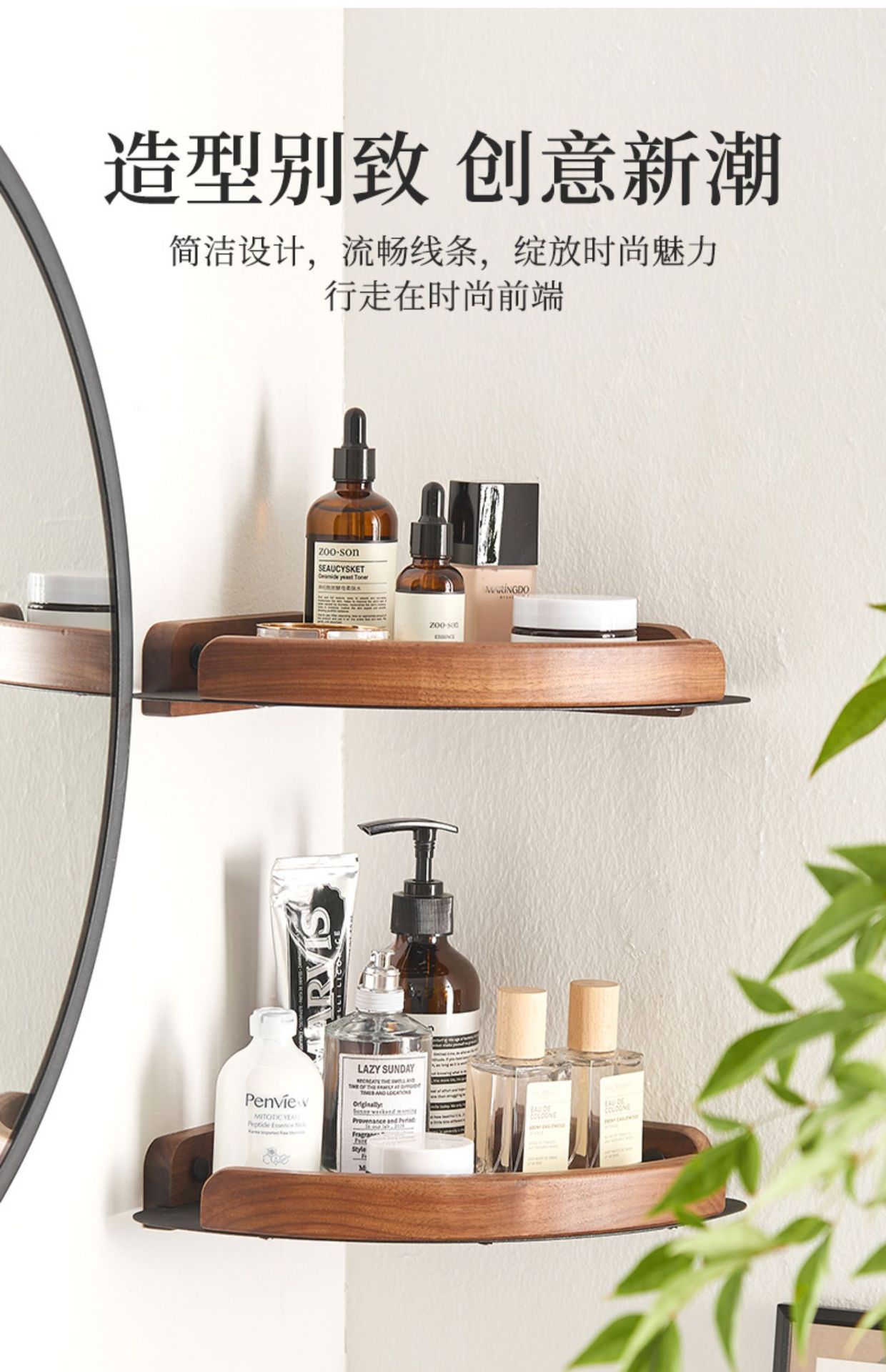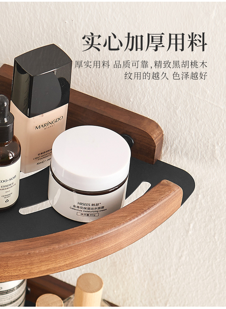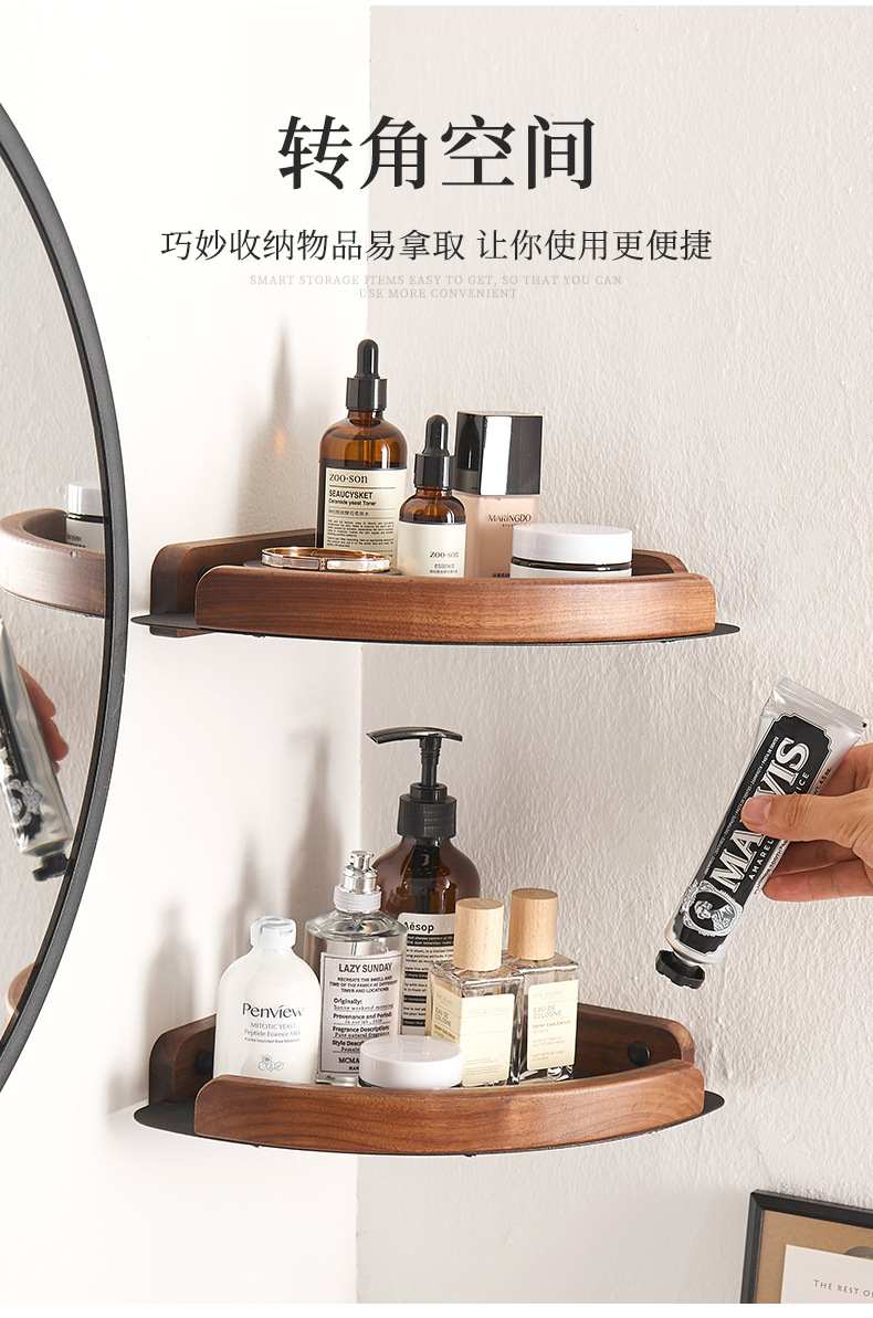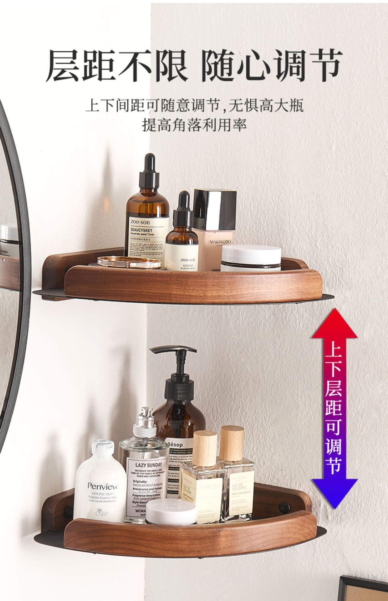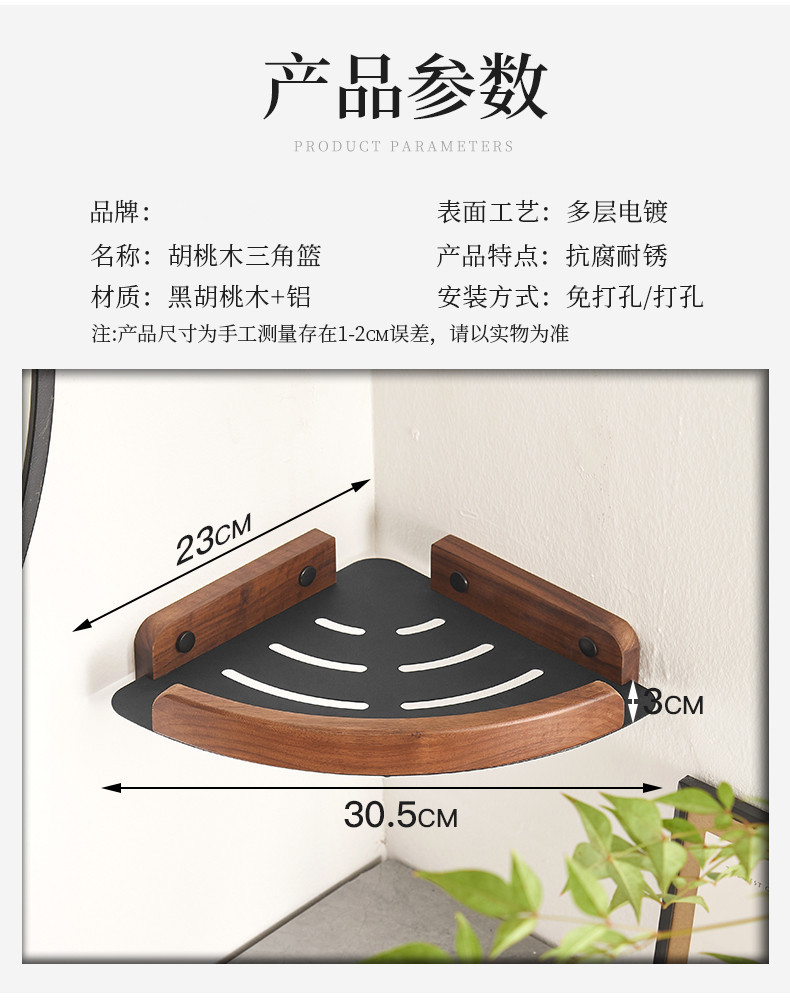 胡桃木枪灰浴室卫生间置物架免打孔洗手间厕所沐浴露收纳三角架子