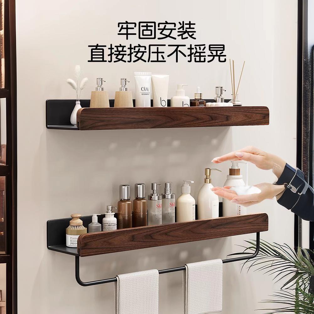 胡桃木浴室トイレ棚壁収納タオル棚穴なしトイレ洗面台トイレ