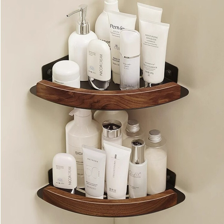 ウォールナットバスルーム収納ラックバスルーム壁三角形トイレ収納バスケットパンチフリーバスルームコーナーラック