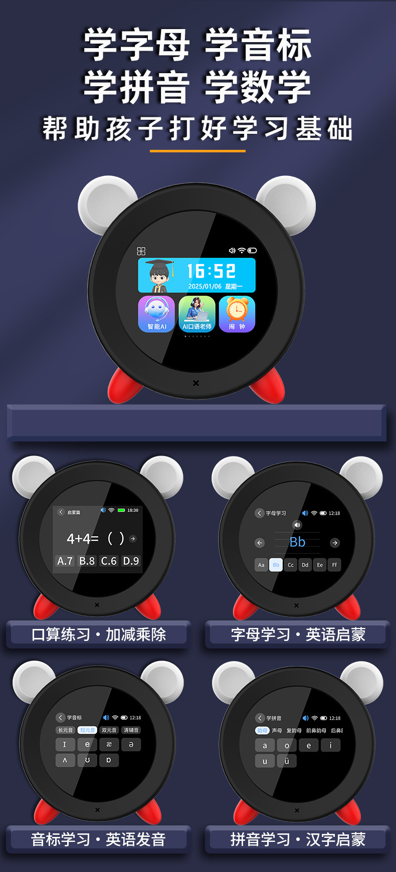 儿童智能语音闹钟多功能 AI语音对话问答机器人学生自律学习神器