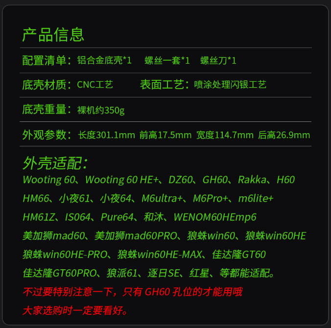 批发H60键盘外壳 适配wooting60HE+MAD60客制化铝合金键盘壳