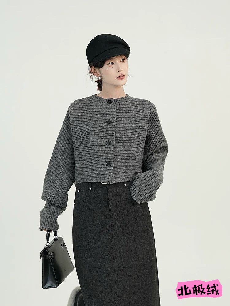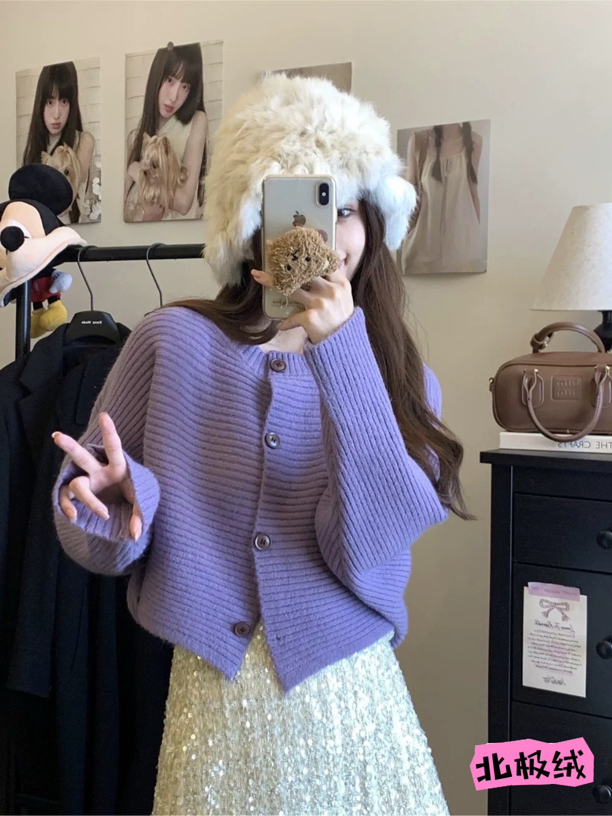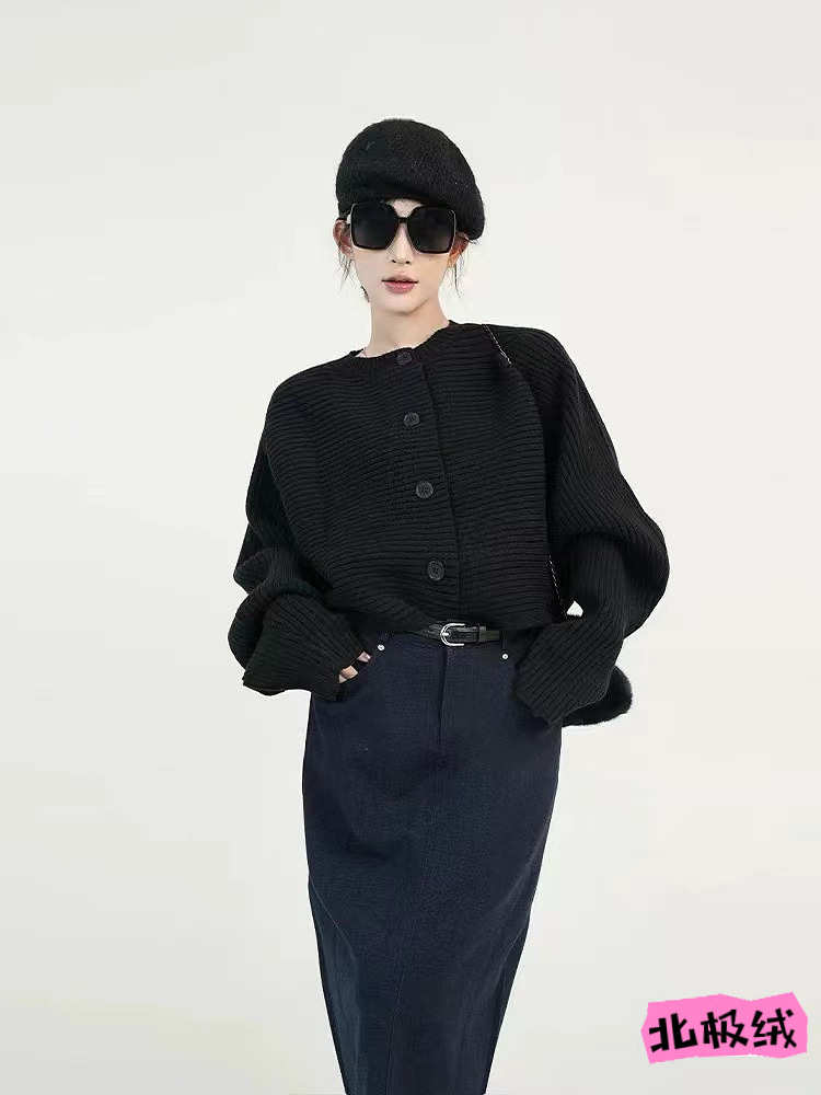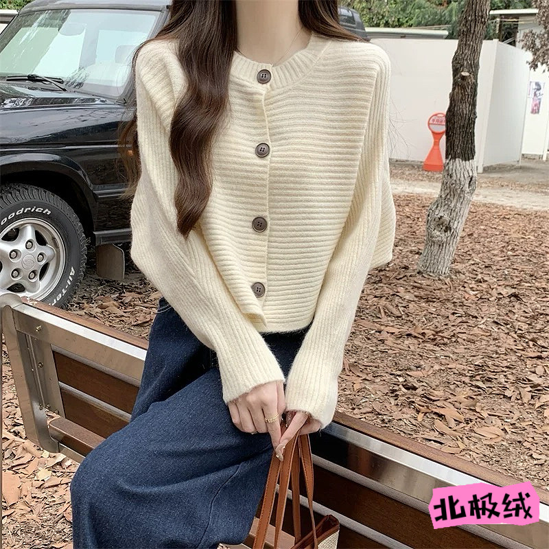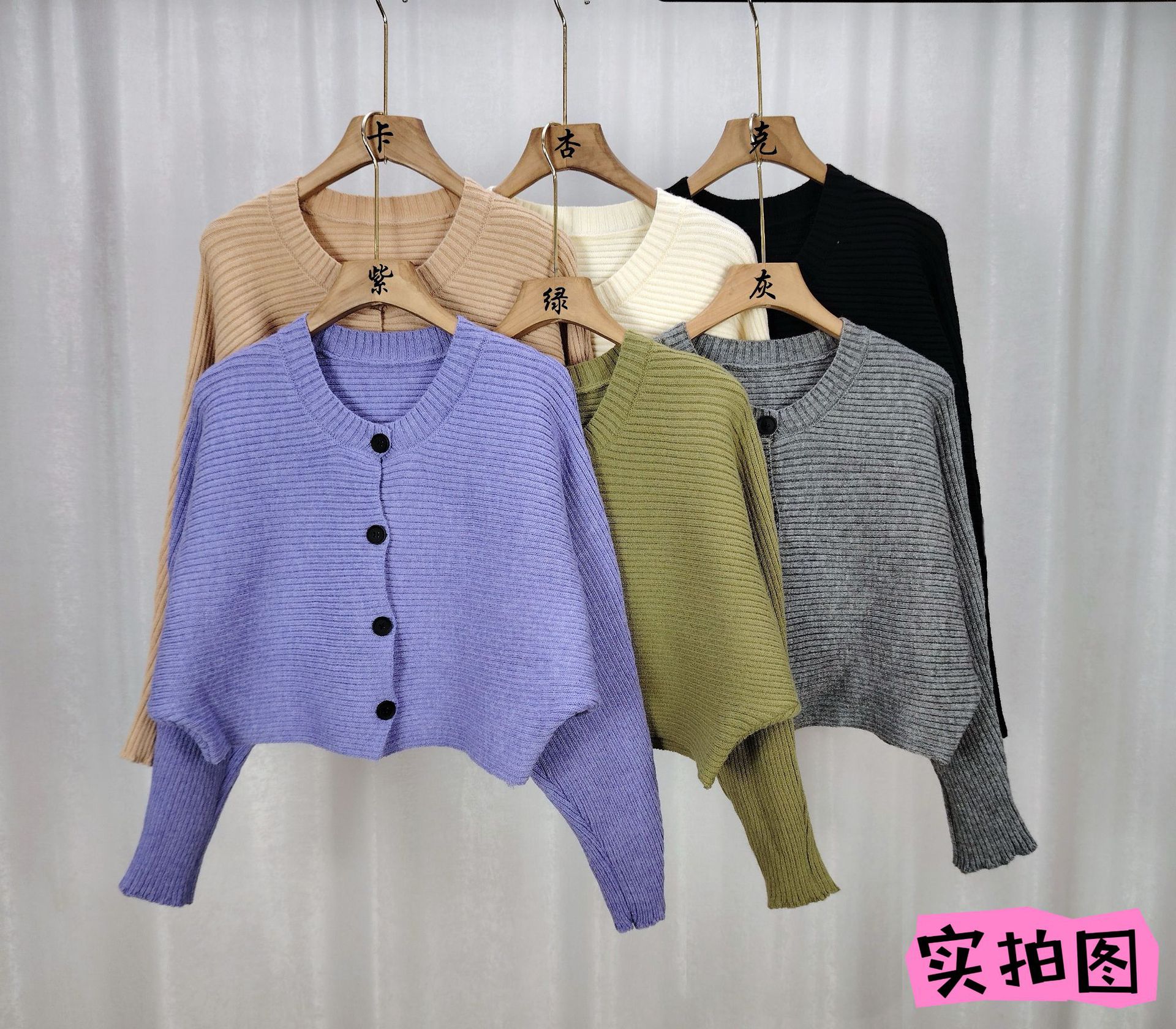短针织毛衣5秋冬韩系宽松显瘦高级感毛衣开衫外套衣蝙蝠衫