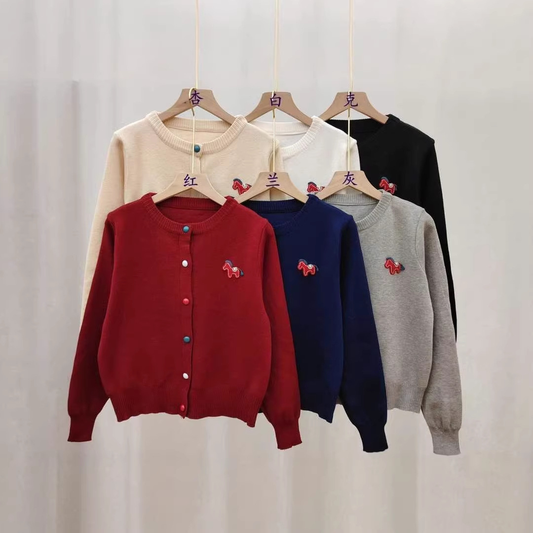 25秋冬季新款圆领小马针织开衫女士软糯洋气百搭毛衣显瘦减龄外套
