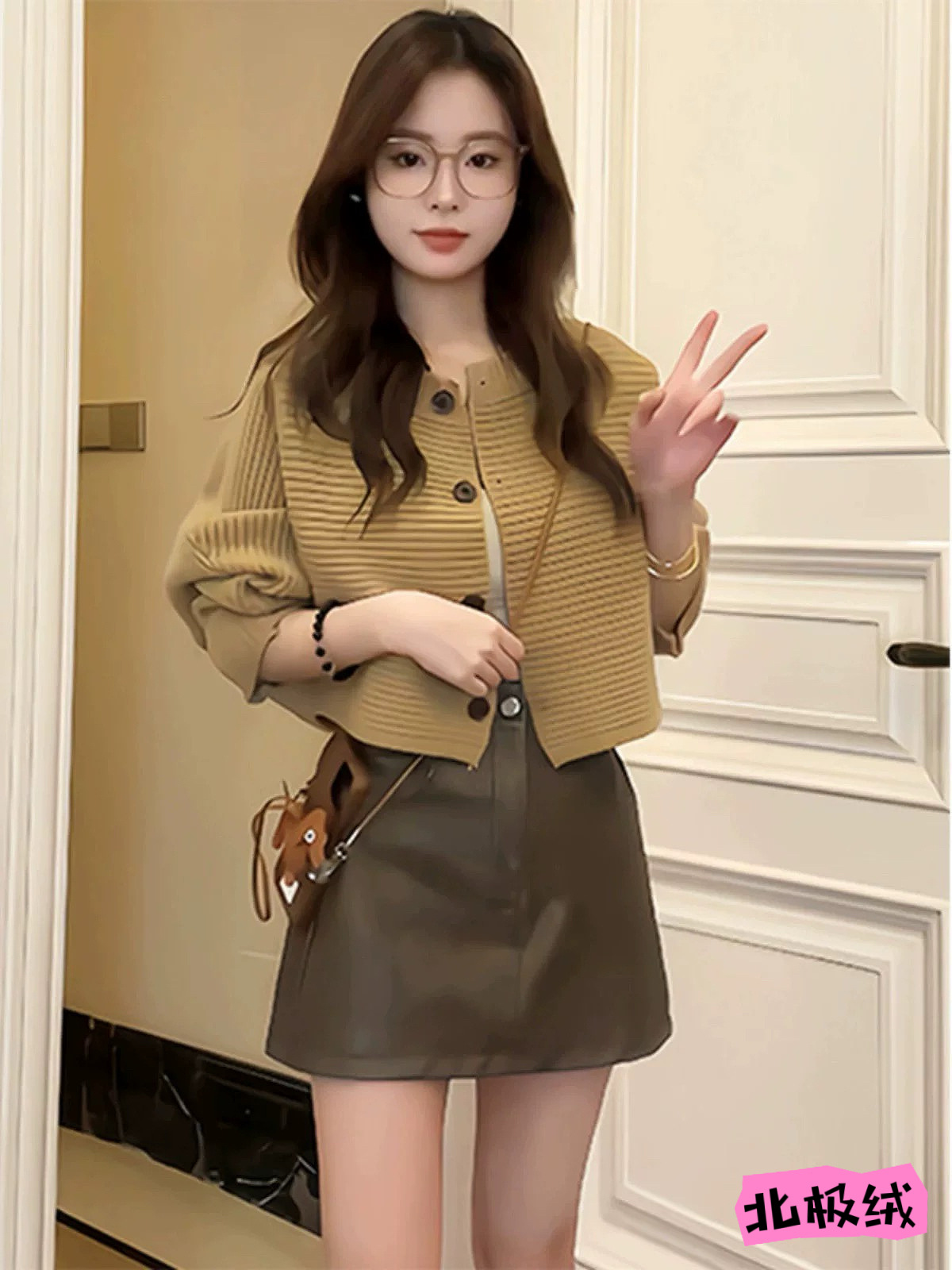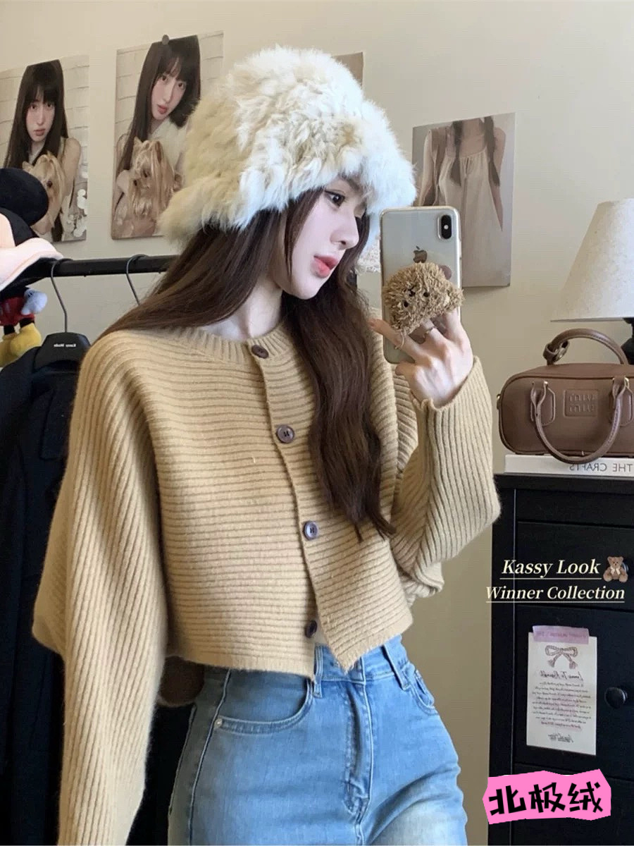 ストリートセーター長袖秋デザインニッチショートスタイルレトロ気質ニットカーディガン万能トップ