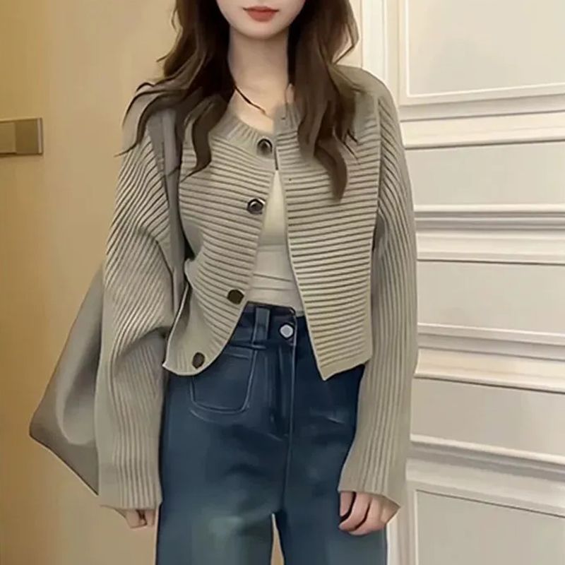 バットスリーブセーターカーディガン春と秋の新しいアウターウェア多用途ハイエンド気質ショートニットジャケットバットシャツ