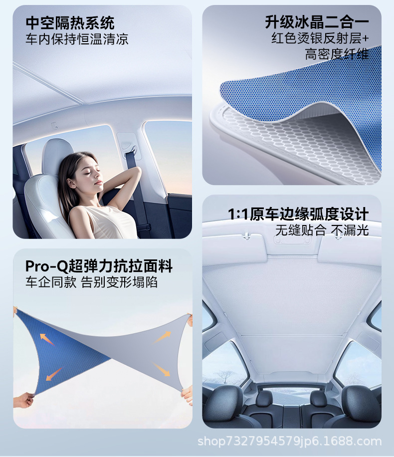 テスラ熙新版ModelY天窓シェード氷晶日焼け止め断熱天幕天井枠の付属品を適用する
