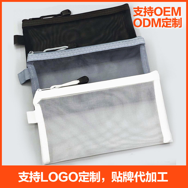 シンプル透明ネット筆袋収納袋学生試験専用携帯大容量文房具袋卸売り