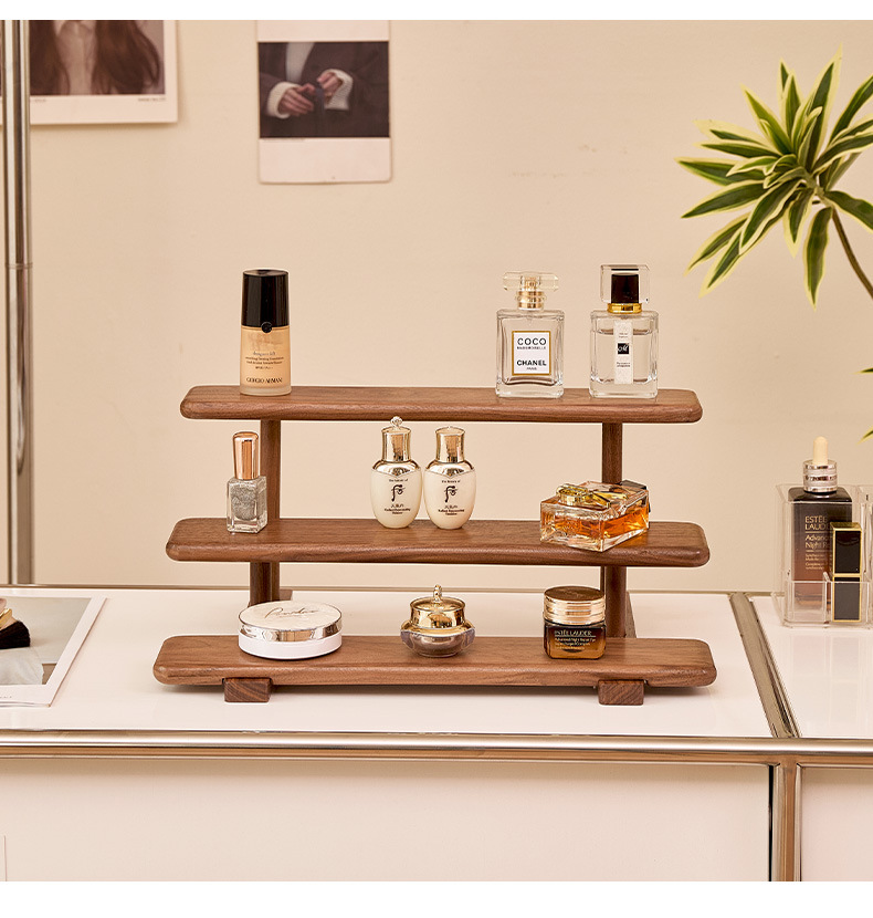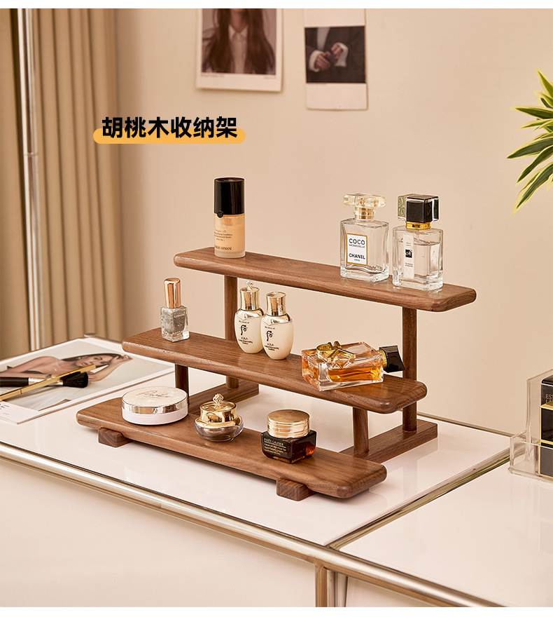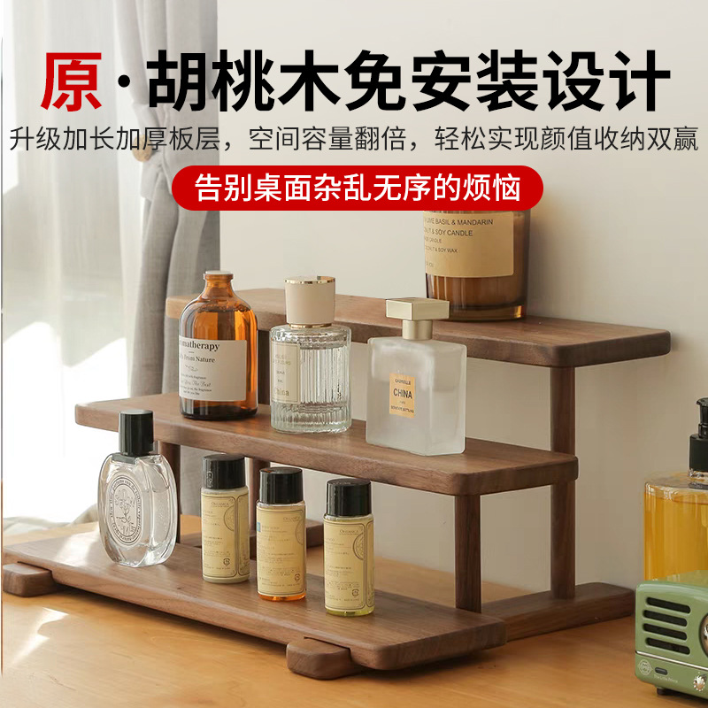 ウォールナットデスクトップ収納ラック多層ストレージ無料設置スキンケア製品マグ香水ディスプレイラック