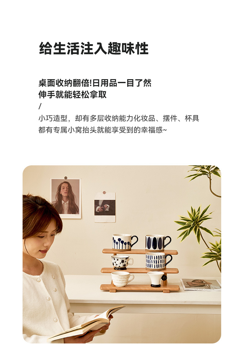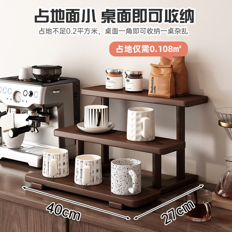 桌面收纳置物架胡桃木家用阶梯架咖啡茶杯陈列展示架子