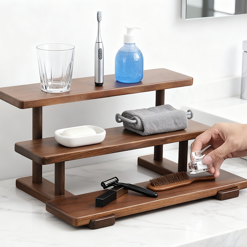 现货木质阶梯式置物架博古架茶具展示架多功能家用浴室卧室置物架