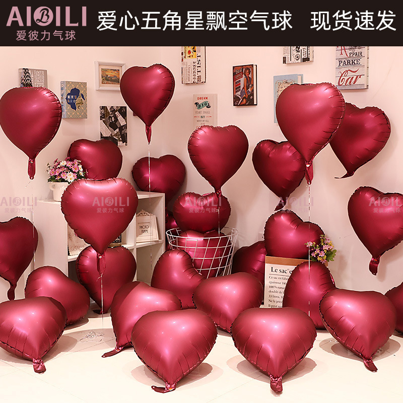 18寸爱心飘空铝膜心形气球订婚婚房结婚氦气七夕生日场景布置气球