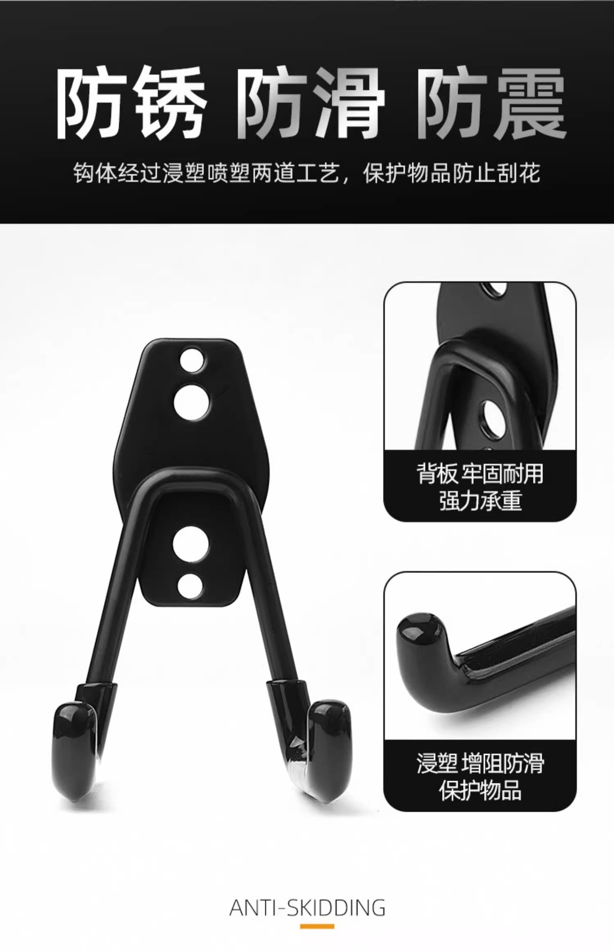 ガレージフックブラックガレージ収納ラウンドメタルダブルフック壁穴ボード置物アクセサリー