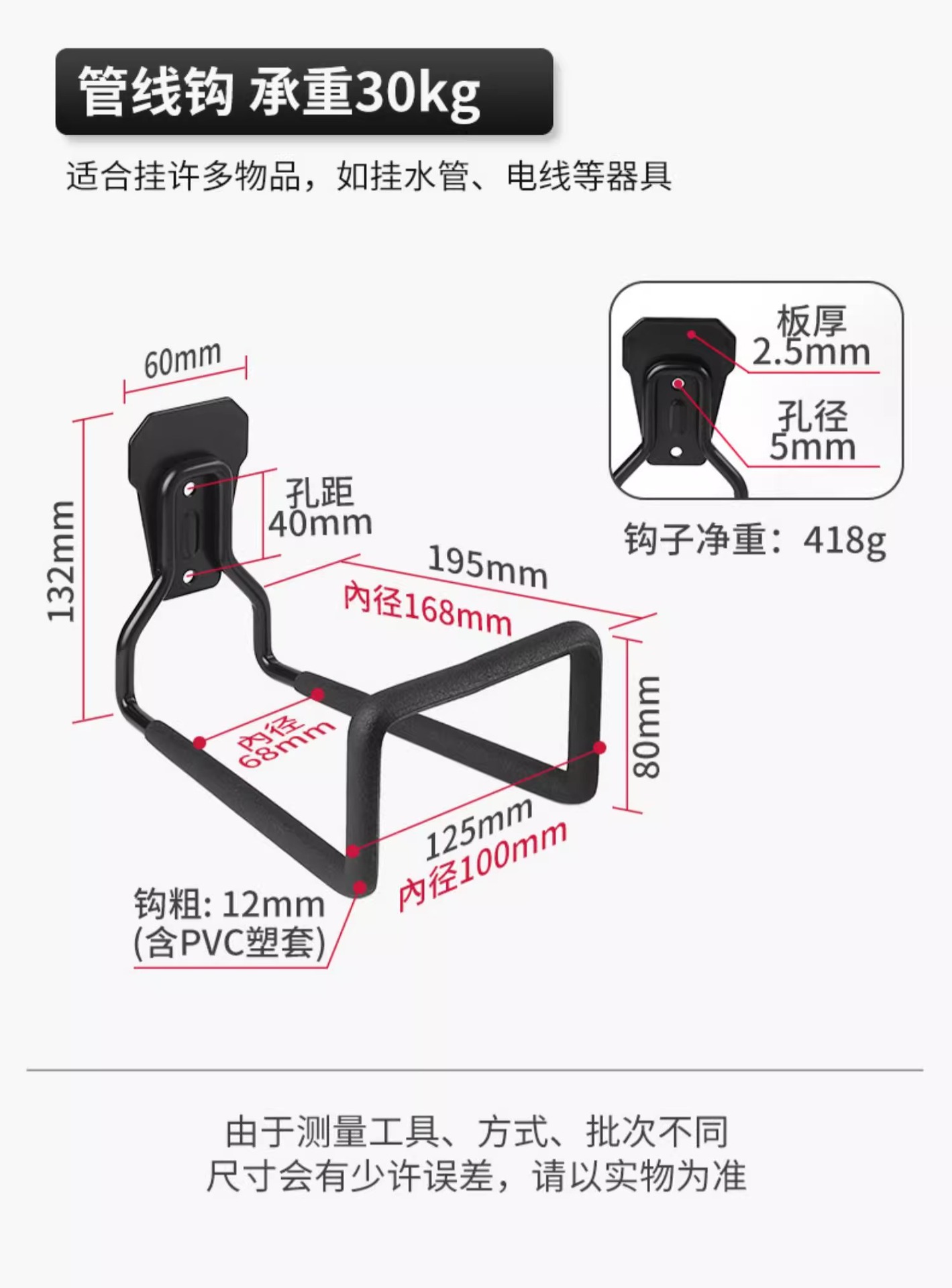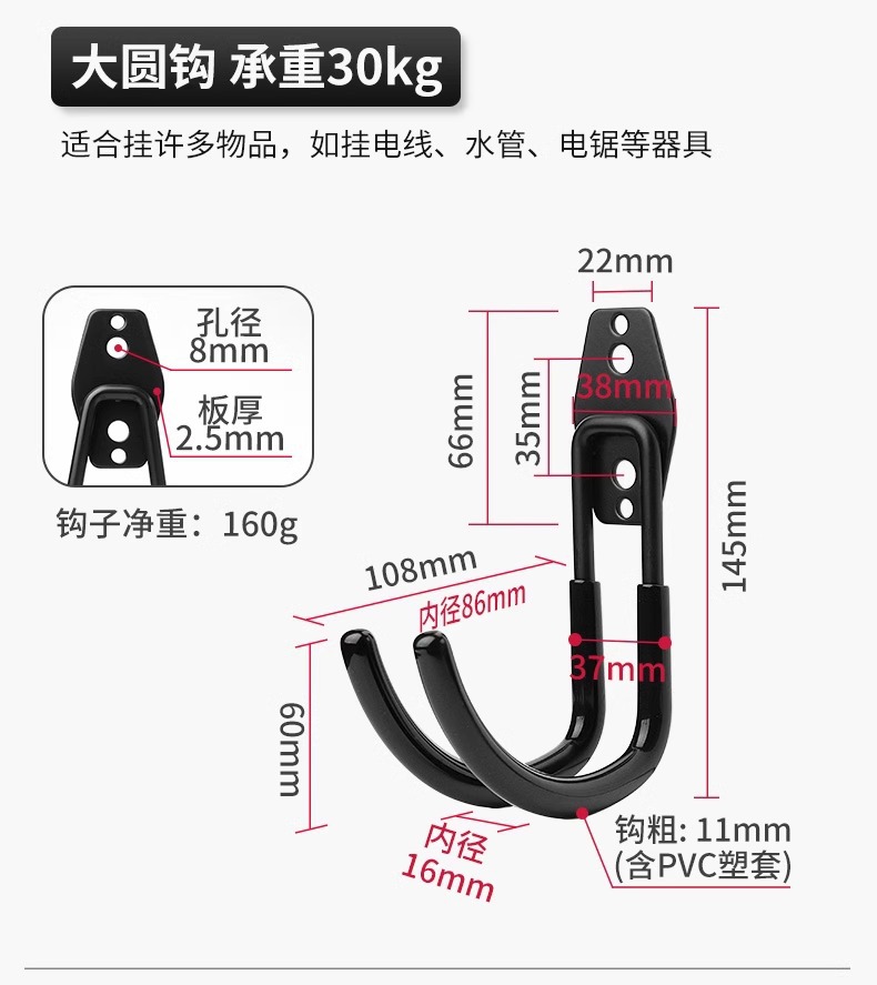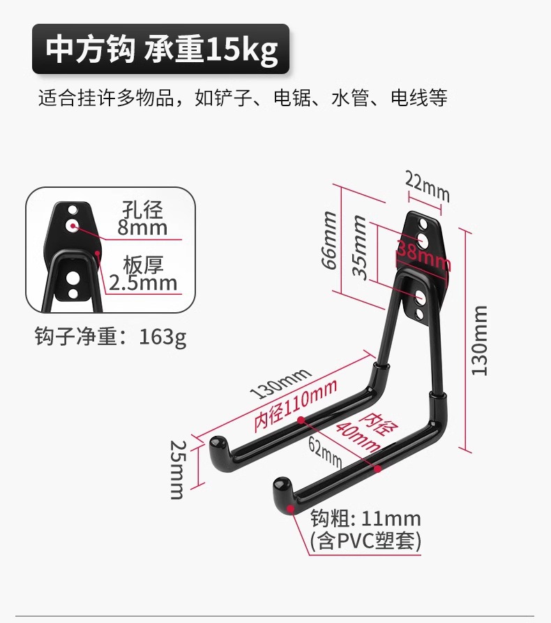 屋外用大型吊り下げフック、壁掛けラック、はしご、ケーブル、水道管フック、ツールフック、パンチングシングルフック
