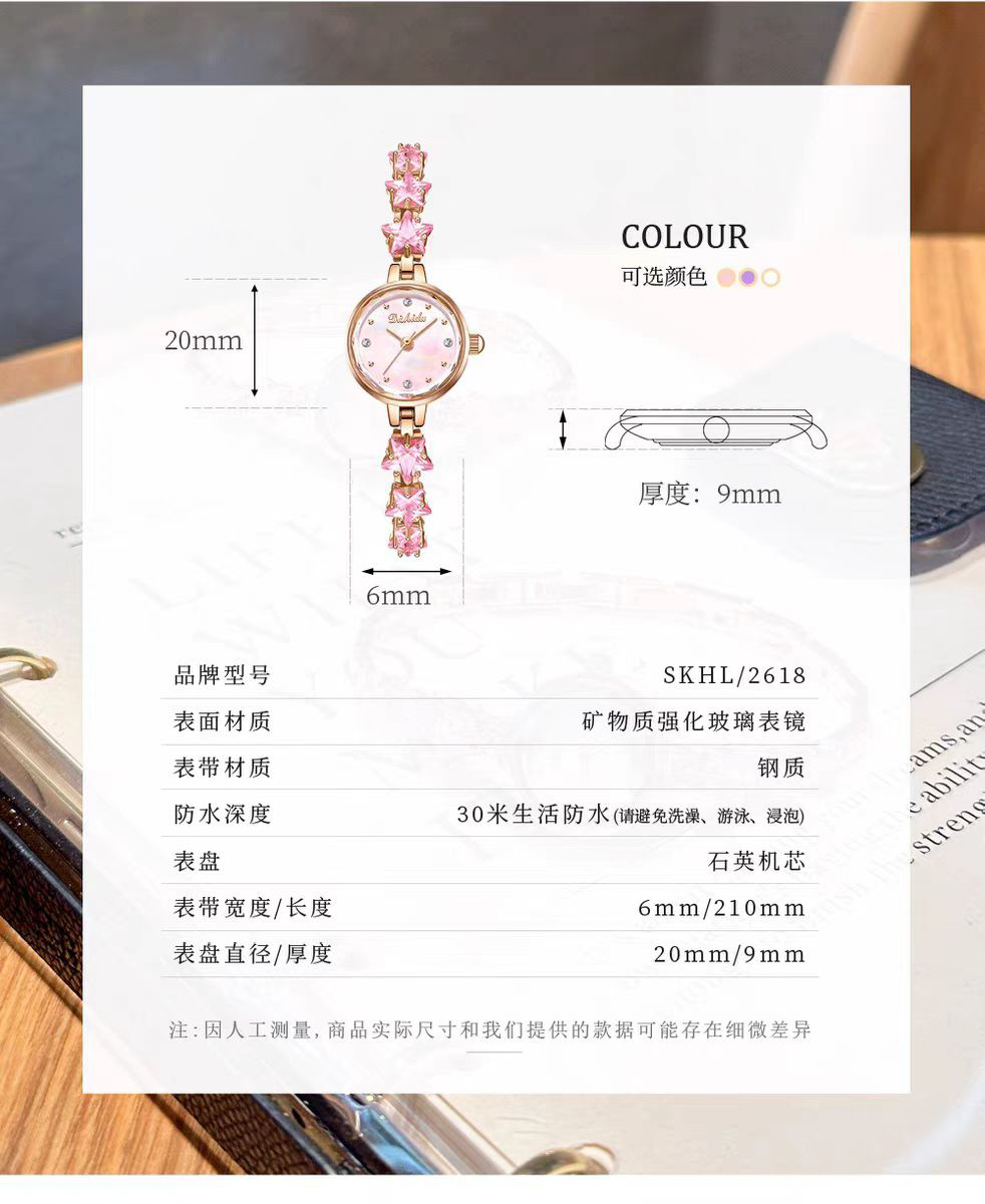 歌迪ピンク腕時計合集石英防水ins風軽贅沢チェーンデザイン感水蜜桃高級感シンプル