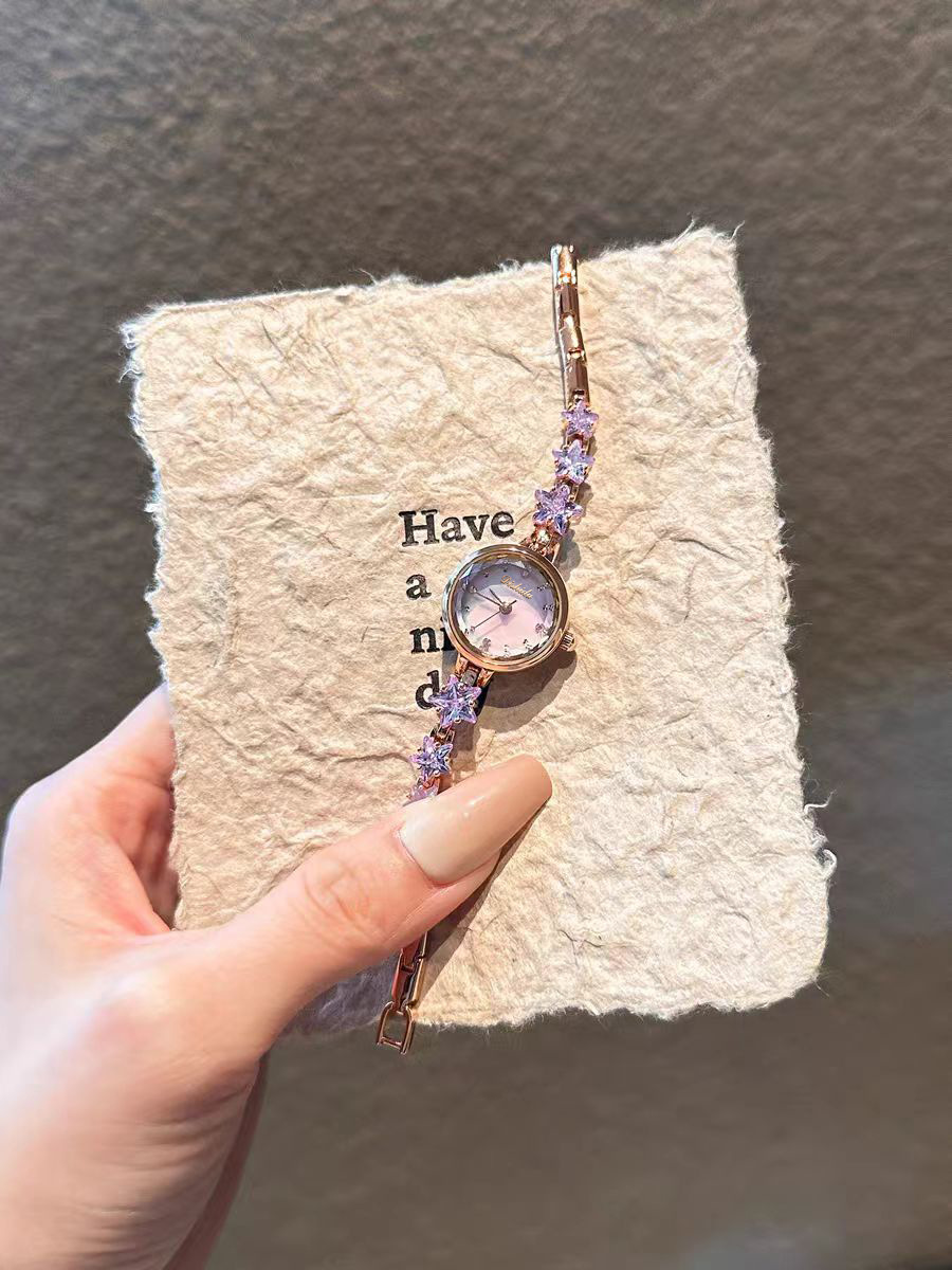 新款网红新款满钻太阳花表盘小巧细带高颜值数字面抽拉手链女士表