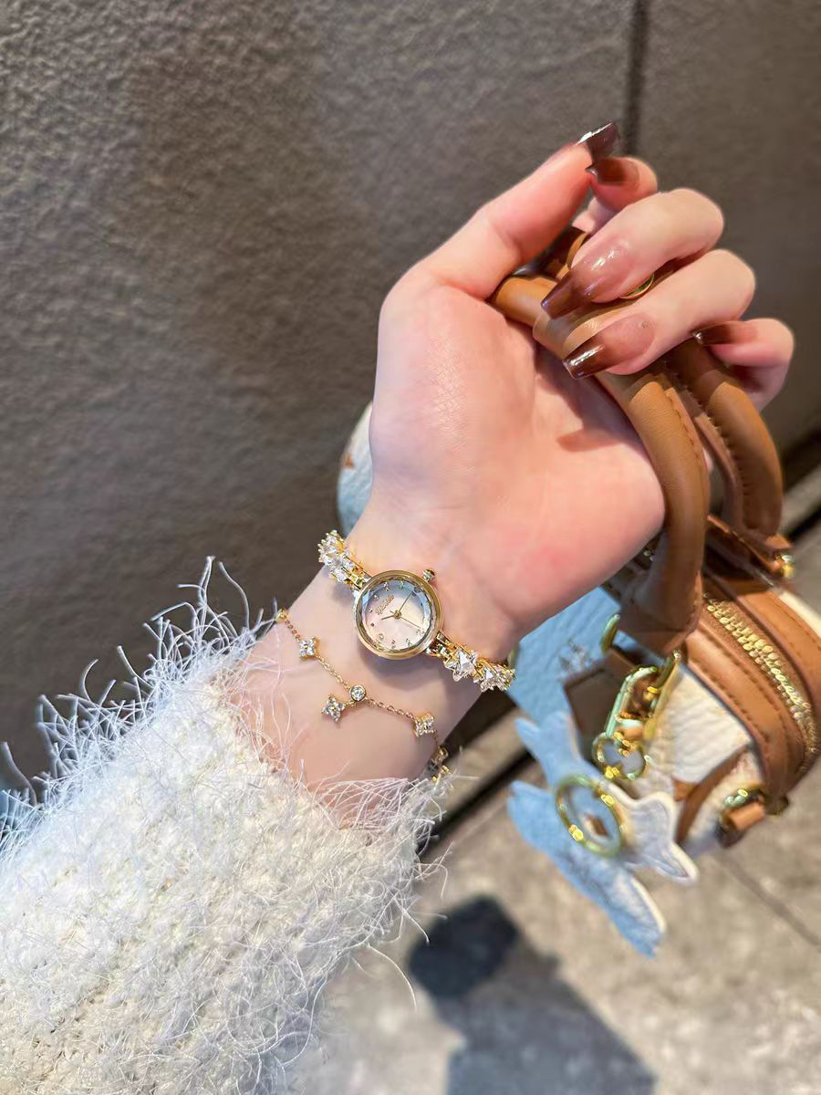 Dishidu高颜値小型ブレスレットジュエリー気質軽豪華貝母盤水晶防水女性手リンク時計
