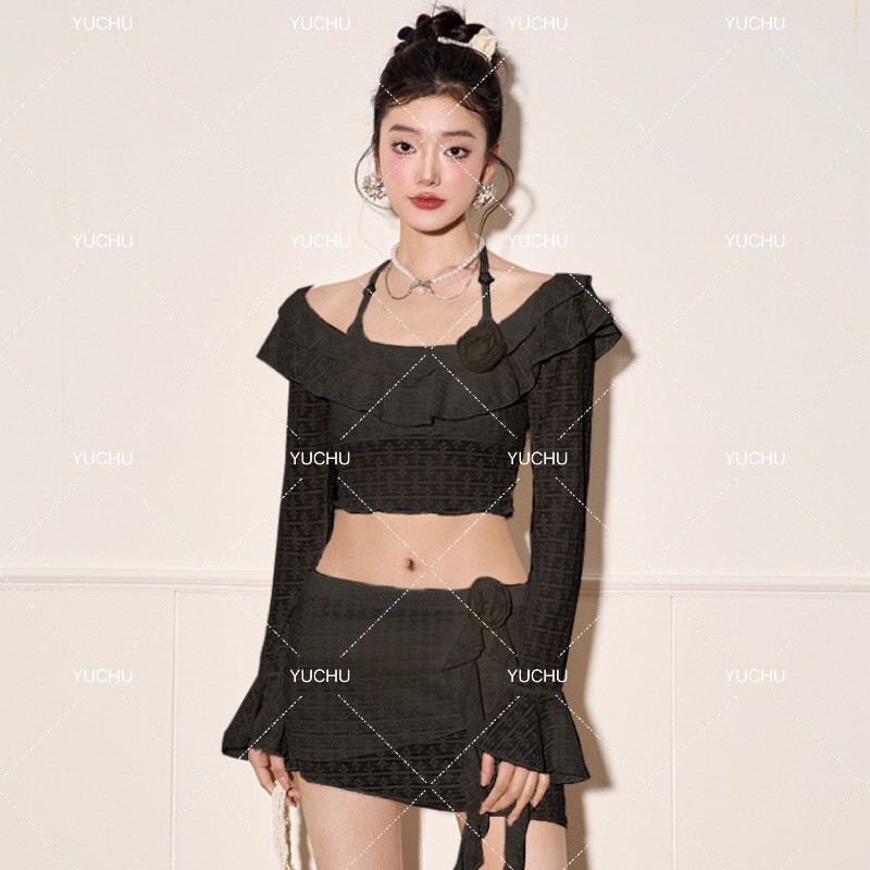 高级感シースルー长袖プルオーバースリーピース保守水着レディースセクシーギャルビキニBIKINI