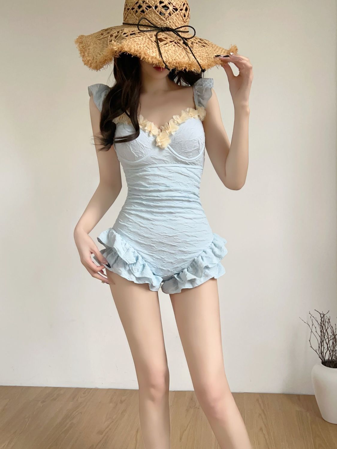2025 新ミルキーベビーブルーワンピースフリルコンサバティブピュアデューティー肉をカバーしてスリムに見えるプッシュアップホリデー水着女性用
