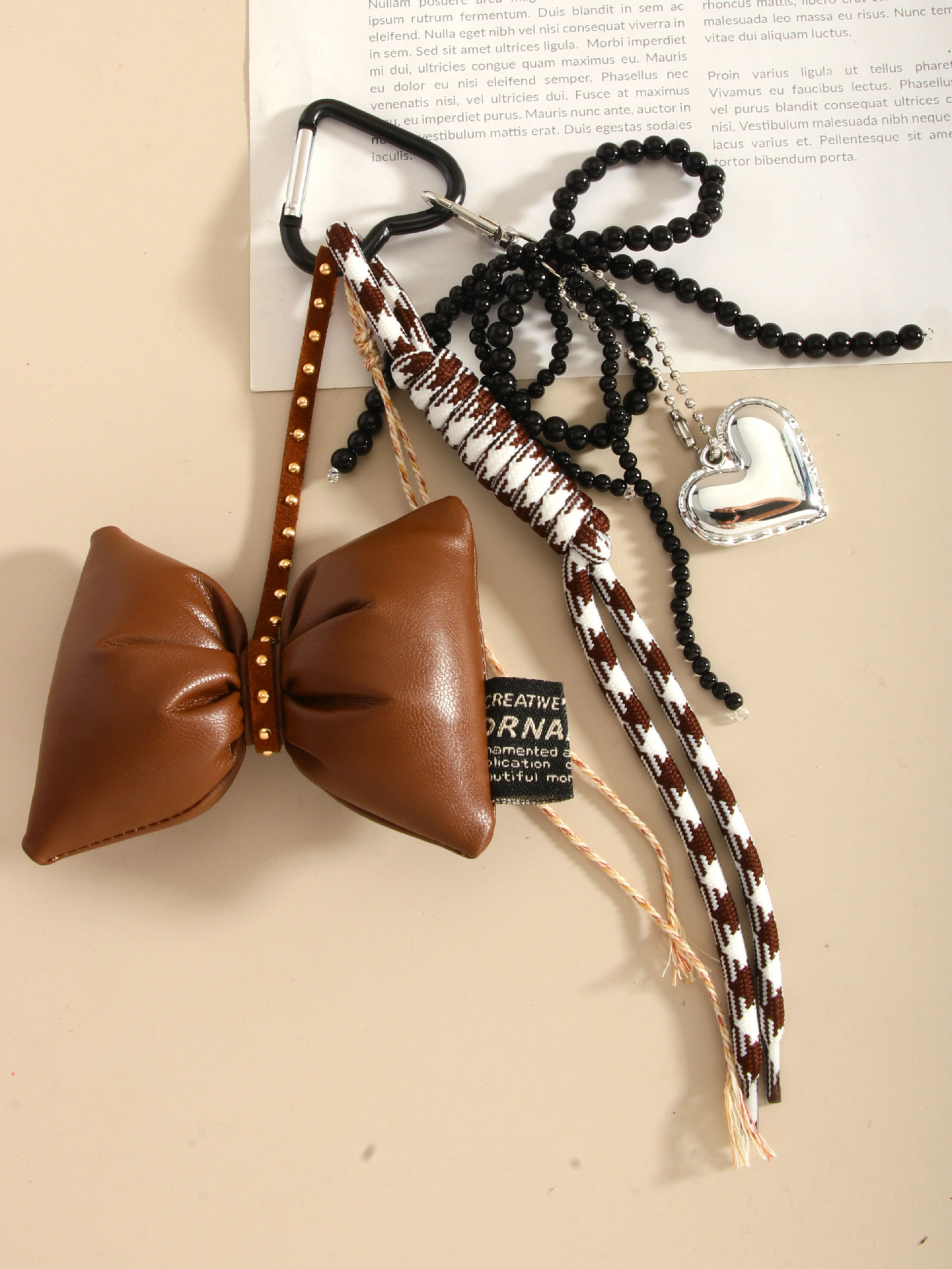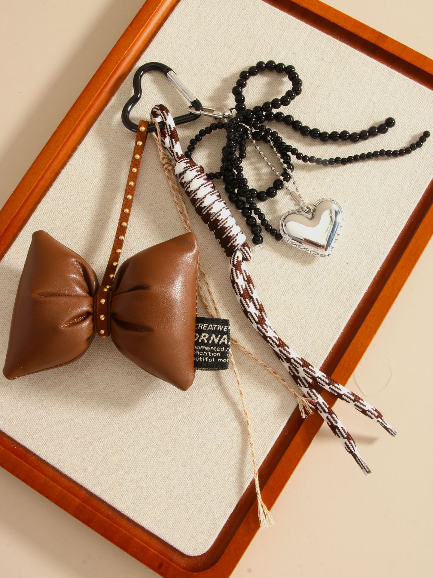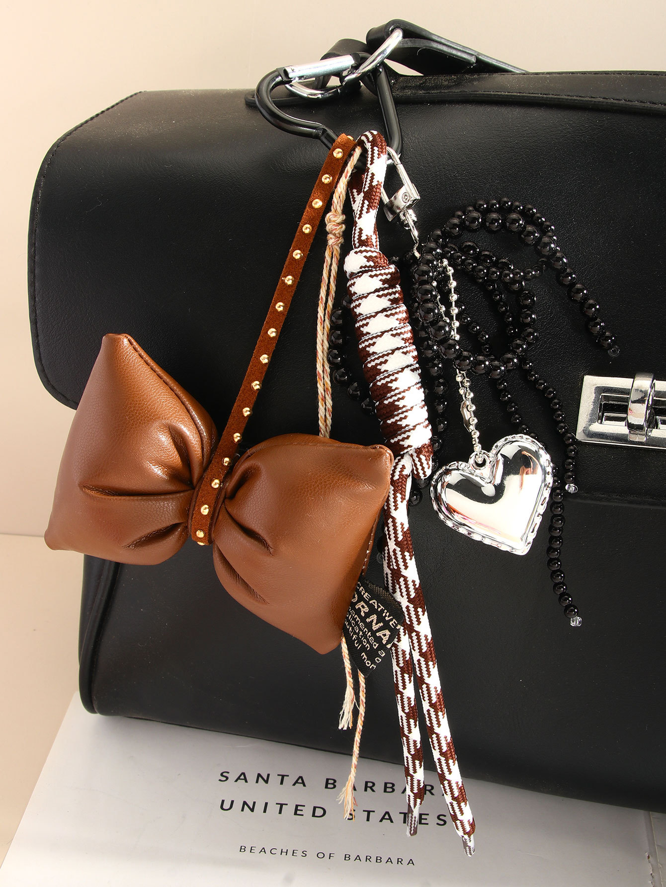 国境を越えた新商品、トレンドのニッチデザイン、ファッショナブルでシンプルなハート型のリボンバッグチャーム、編み紐のキーホルダー