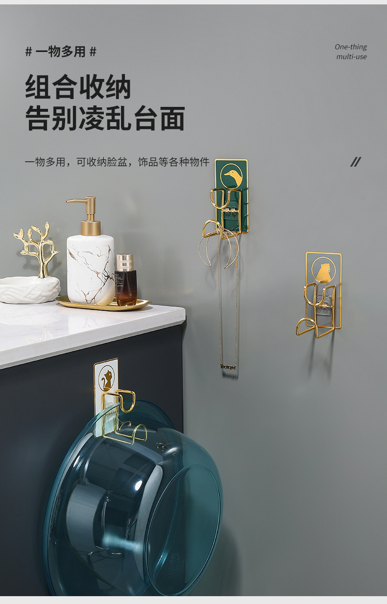 浴室収納神器トイレ穴なし洗面器収納フック棚無痕箔押し洗面器フック