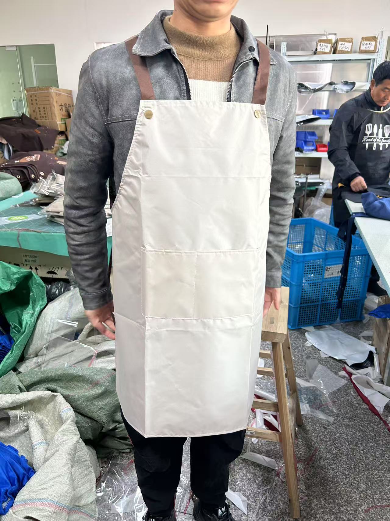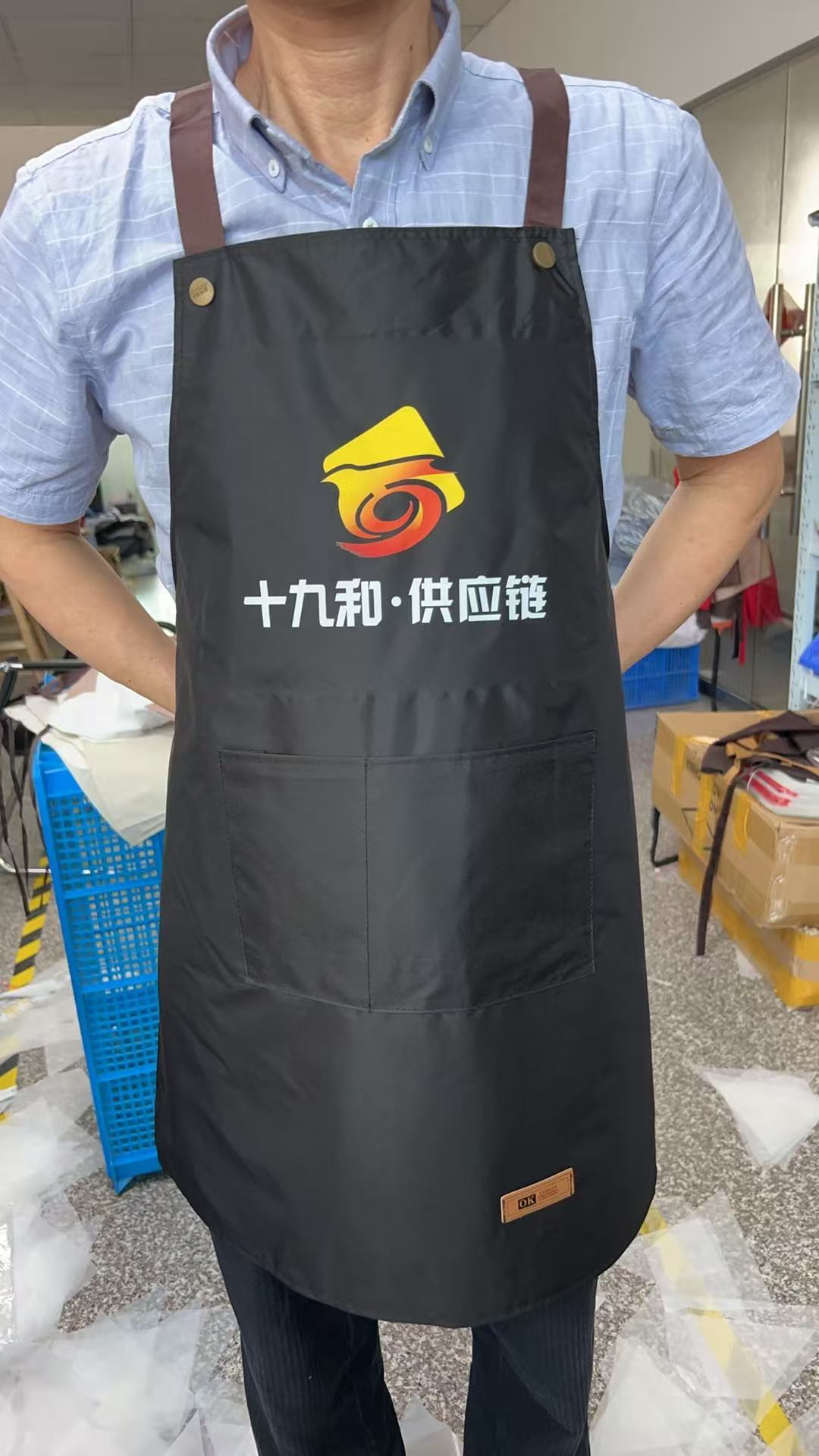 新しい国境を越えた対外貿易防水エプロンはロゴの印字帯をカスタマイズして料理人の台所の飲食エプロンを調節することができる