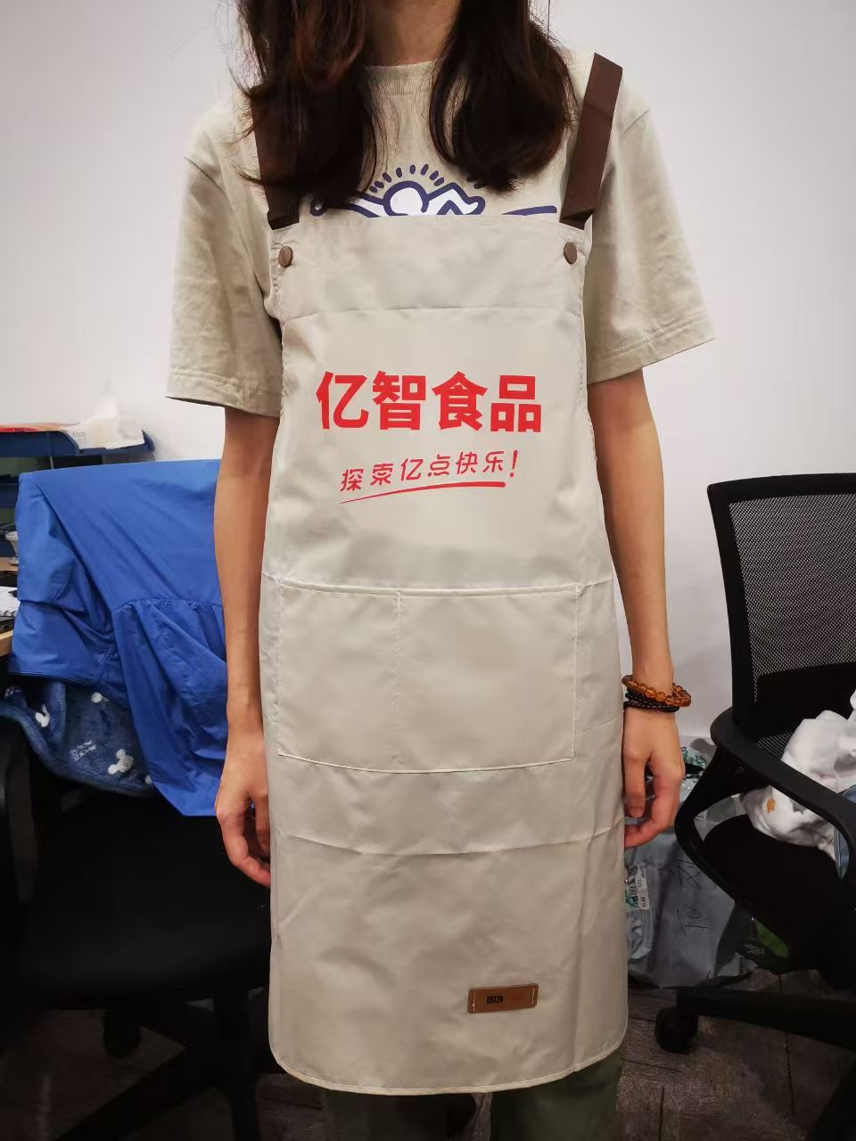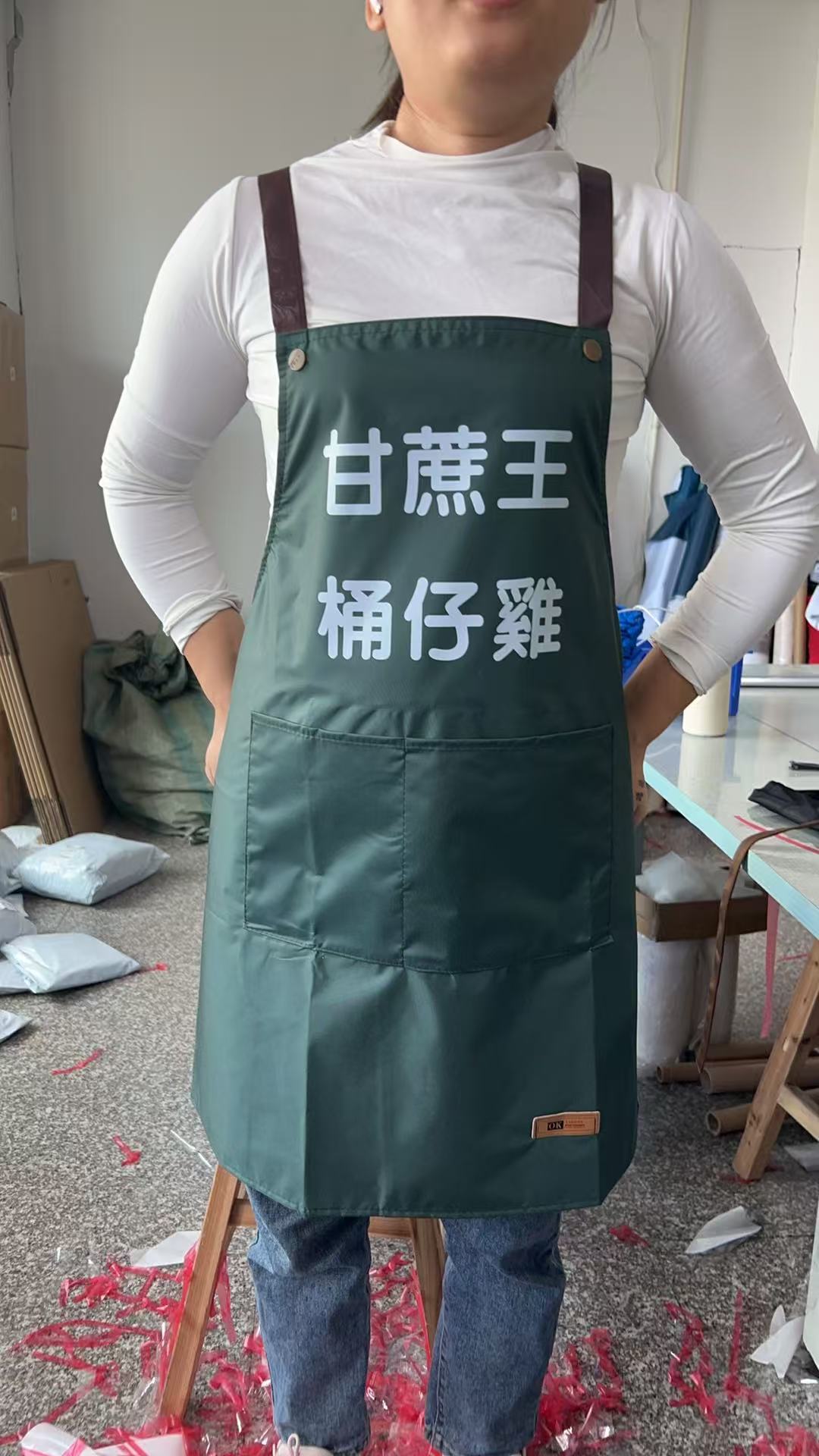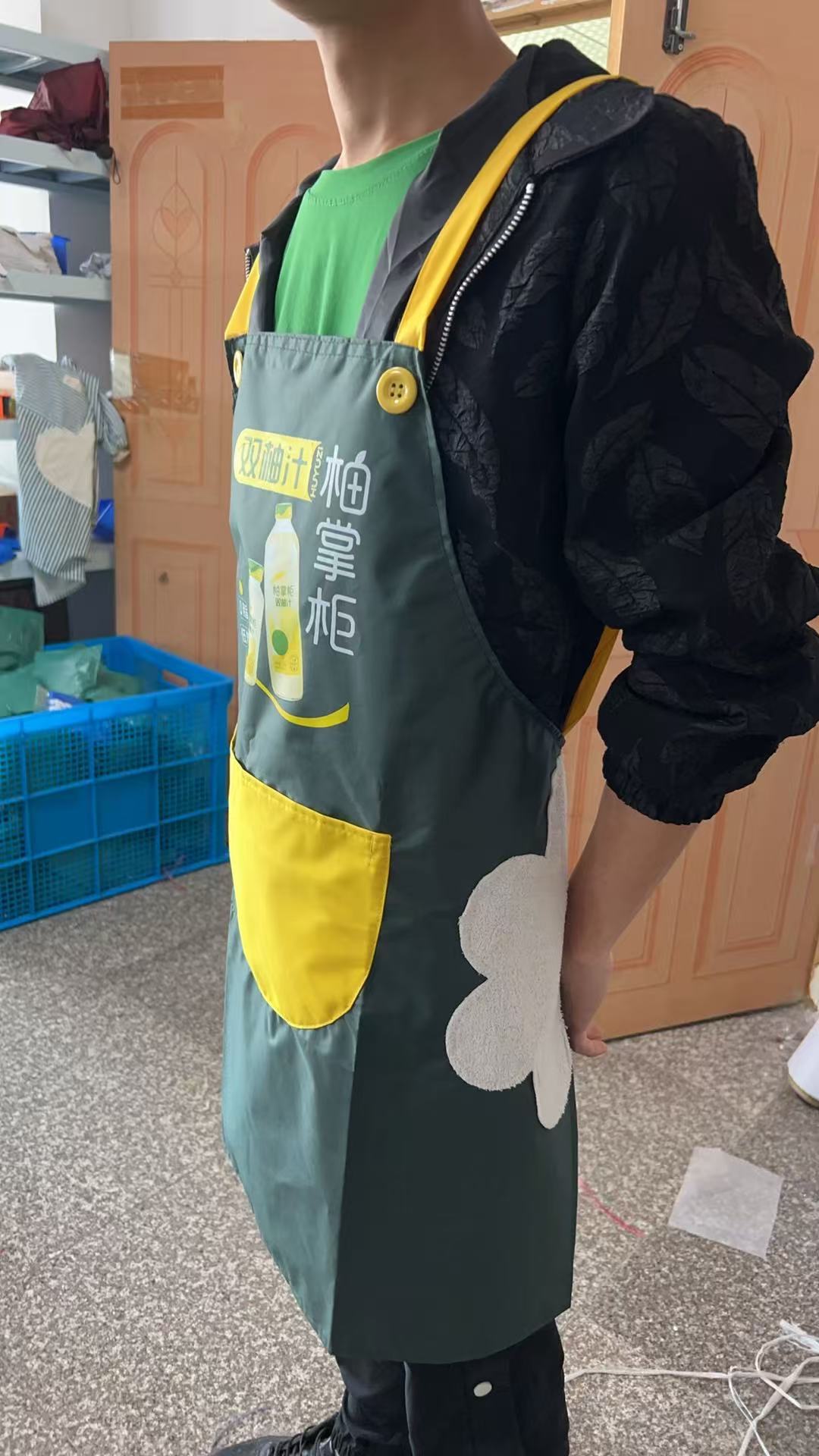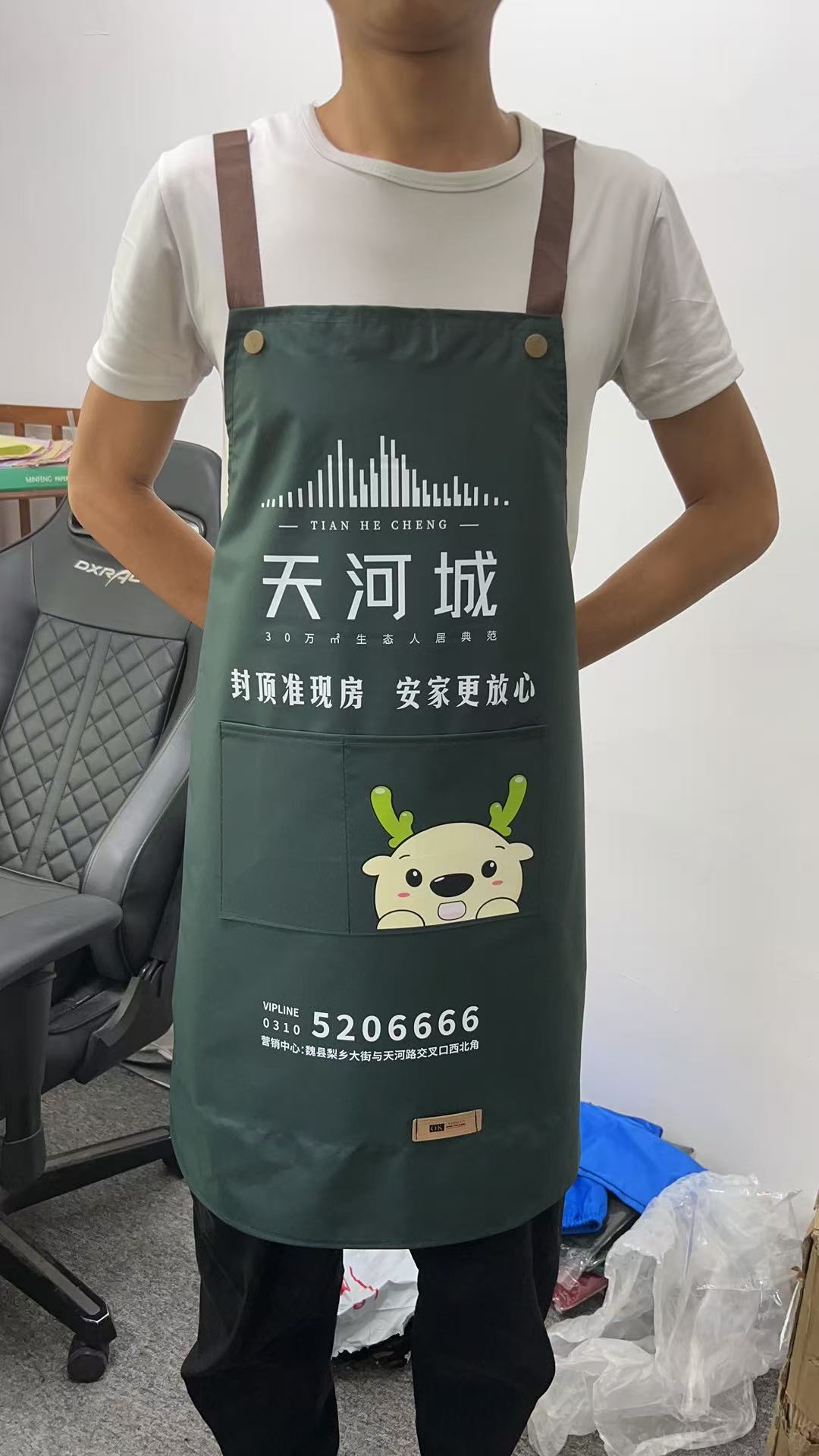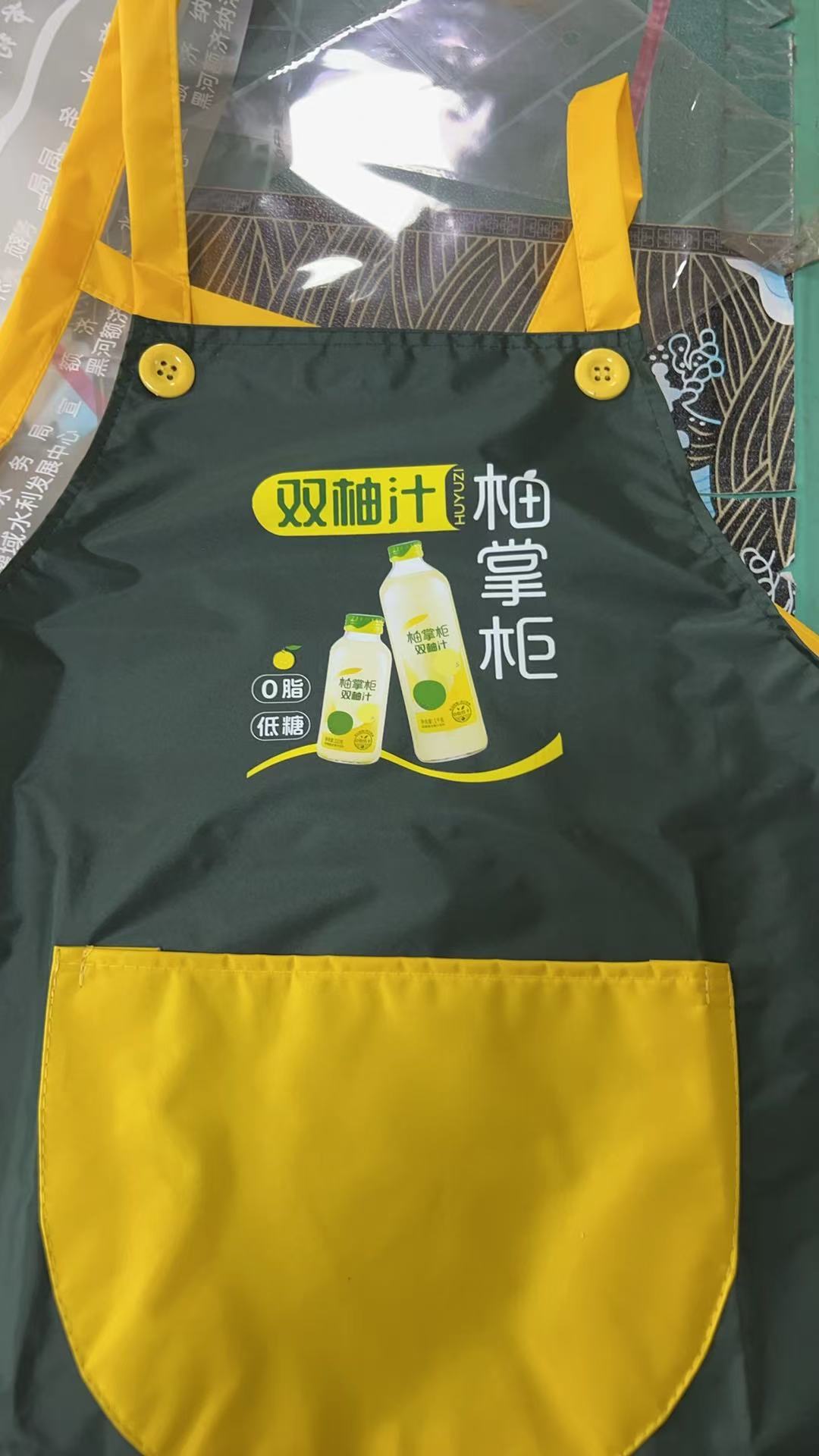 ロゴ印刷入りオーダーメイドエプロン、ミルクティー、フルーツミルクティー店、ネイルサロン、スーパーマーケット、飲食店向け、防水・防油作業服