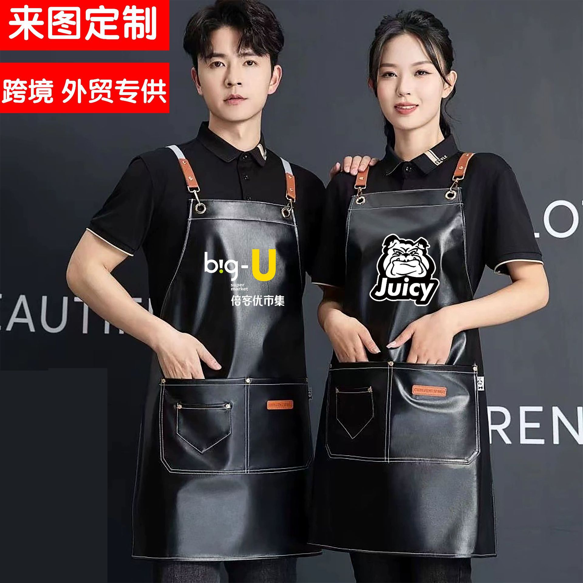 PU ソフトレザーエプロンカスタムプリントロゴケータリング特殊防水耐油キッチン水生革エプロン作業服女性用