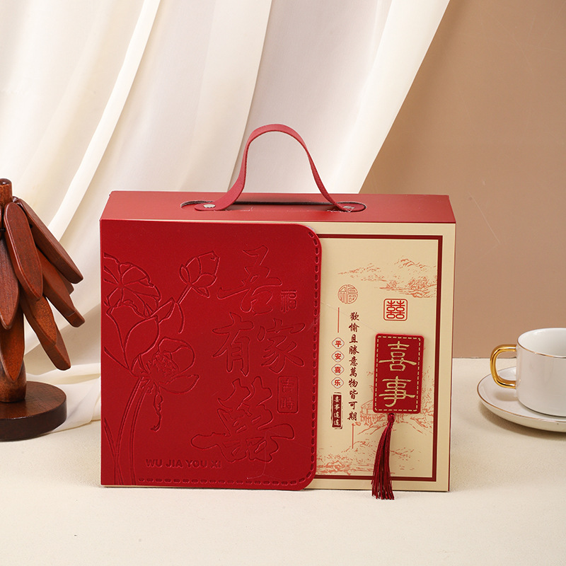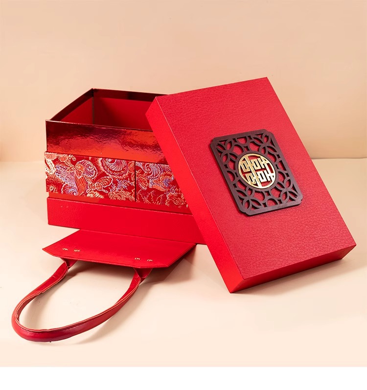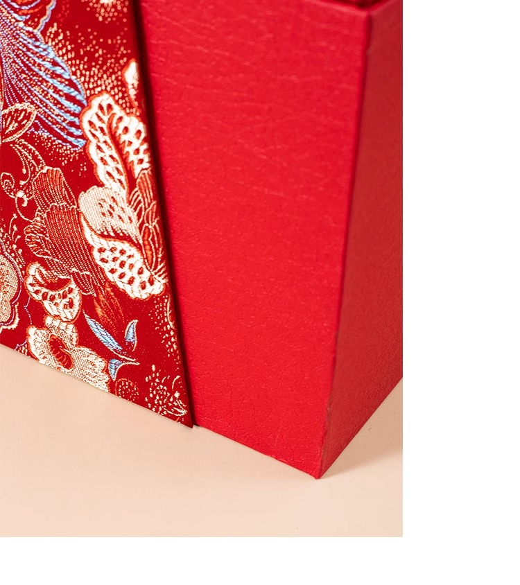 赤い二重カバーをめくって、結婚高級ギフトボックスを包装します。