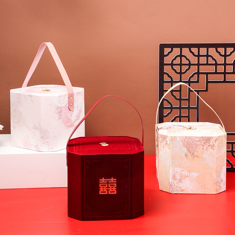 中国風携帯式結婚式の喜糖箱婚約キャンディギフトボックスの空箱